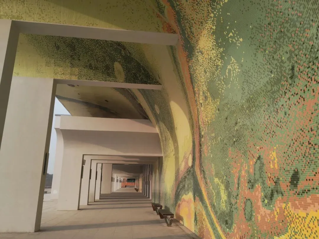 造型取自窑洞式作坊,外立面用高光彩釉陶瓷砖,阳光下釉彩流淌,像一座“长出来”的瓷器。