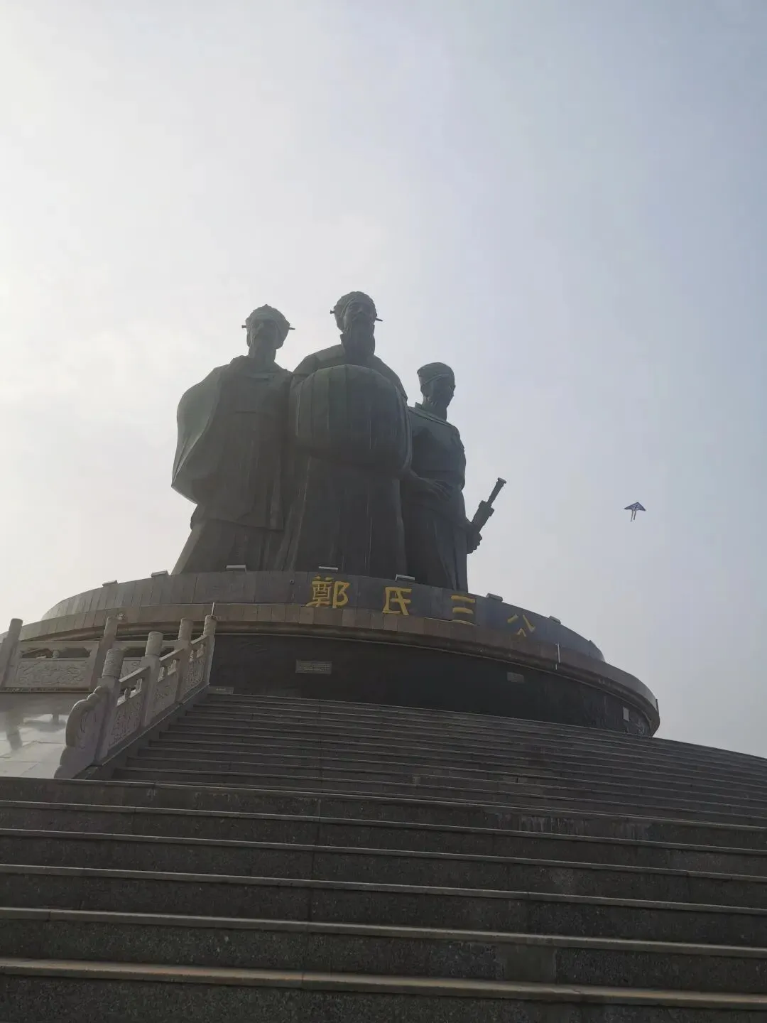 在郑州荥阳市城东南檀山、郑上路与 310 国道交会处,矗立着一座巨大雕像——“郑氏三公”雕像。