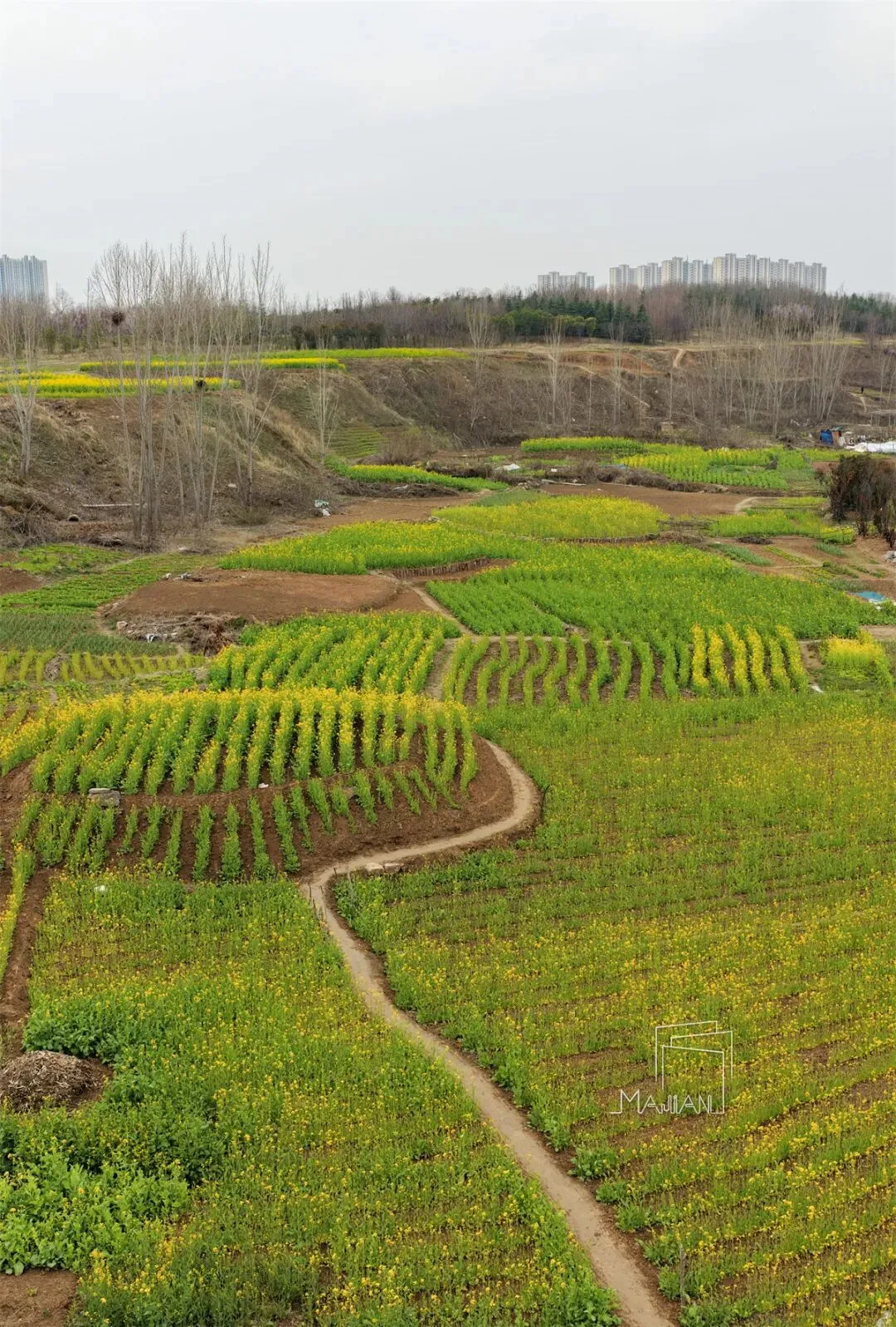 这可能是离郑州主城区最近的油菜花田,西四环向西1公里,中原路南的须水河岸边,油菜花正在开放,羊肠小道,原生态田园风。还有芦苇和小河,拍照很出片。