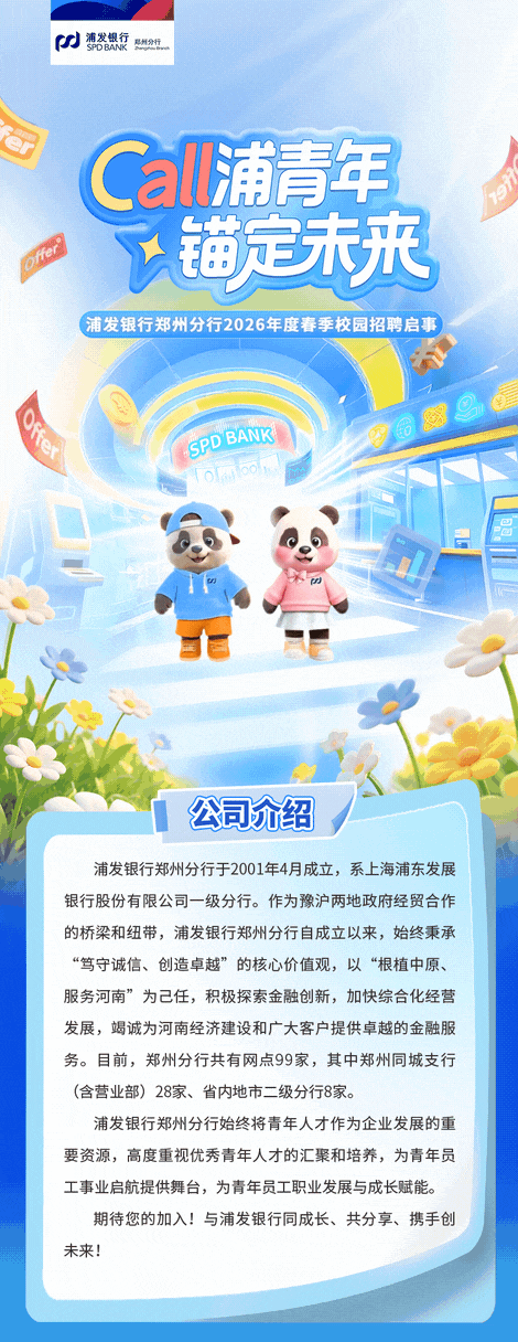 >浦发银行郑州分行2026年度春季校园招聘正式启动!