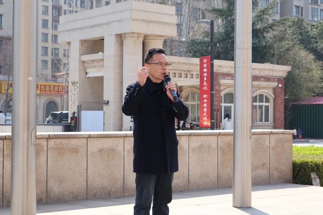 执行校长李亚峰带领校领导班子早早守候在车队旁,为学子们壮行。李校长深情寄语在场的每一位同学: