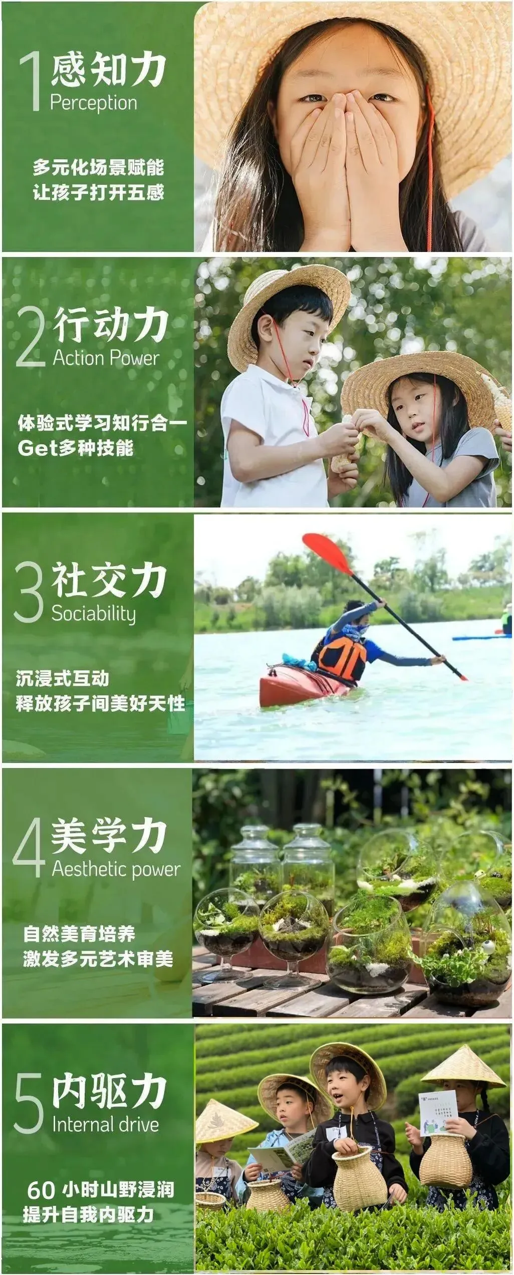 做一次野孩子。在野外采茶,让泥水弄湿裤脚,就2天,把孩子还给自然,让少年无声蜕变。