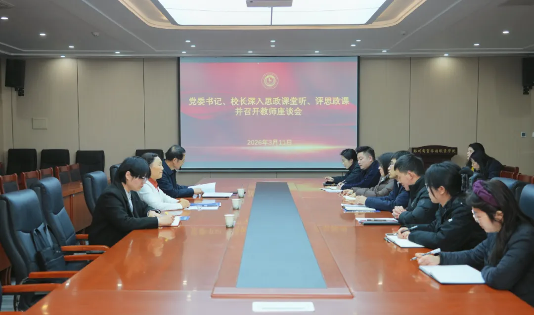 3月11日上午,郑州商贸旅游职业学院党委书记张睿、校长程东阳、党委副书记季月月一行深入新密校区思政课堂一线听课指导,并在马克思主义学院召开教师座谈会。学校马克思主义学院院长乔辉辉主持座谈会。