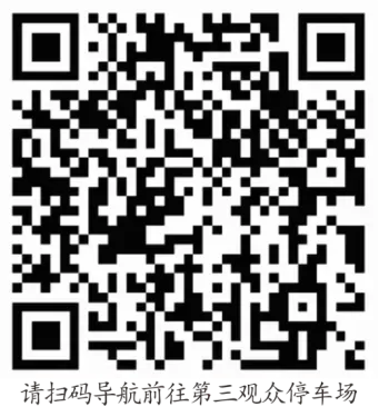 设在奥体中心地下停车场。观众车辆经西四环地面层(或长椿南路)——博体路——进奥体中心南门——按照管理人员指挥进入地下停车场停放;退场时,车辆可经奥体中心西、北、南三个地下停车场出口驶出(建议从西门和南门驶出,驶出后可驶入西四环高架向南、北方向驶离活动现场)。请扫描下方二维码导航前往停车场。该停车场饱和后,请根据交警及工作人员指挥或导航提示,前往其他停车场停放。