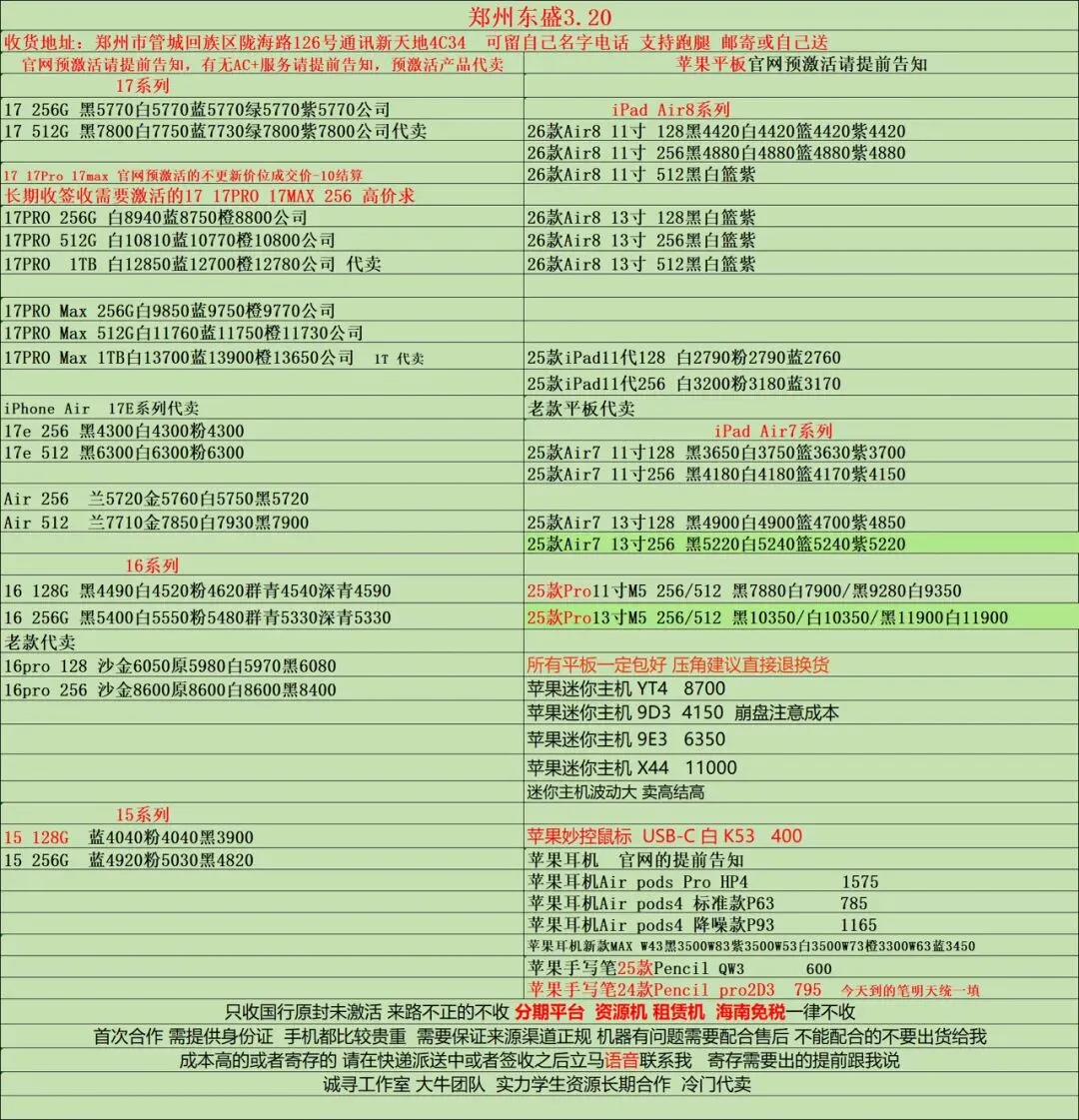 >郑州通讯新天地东盛3.20行情