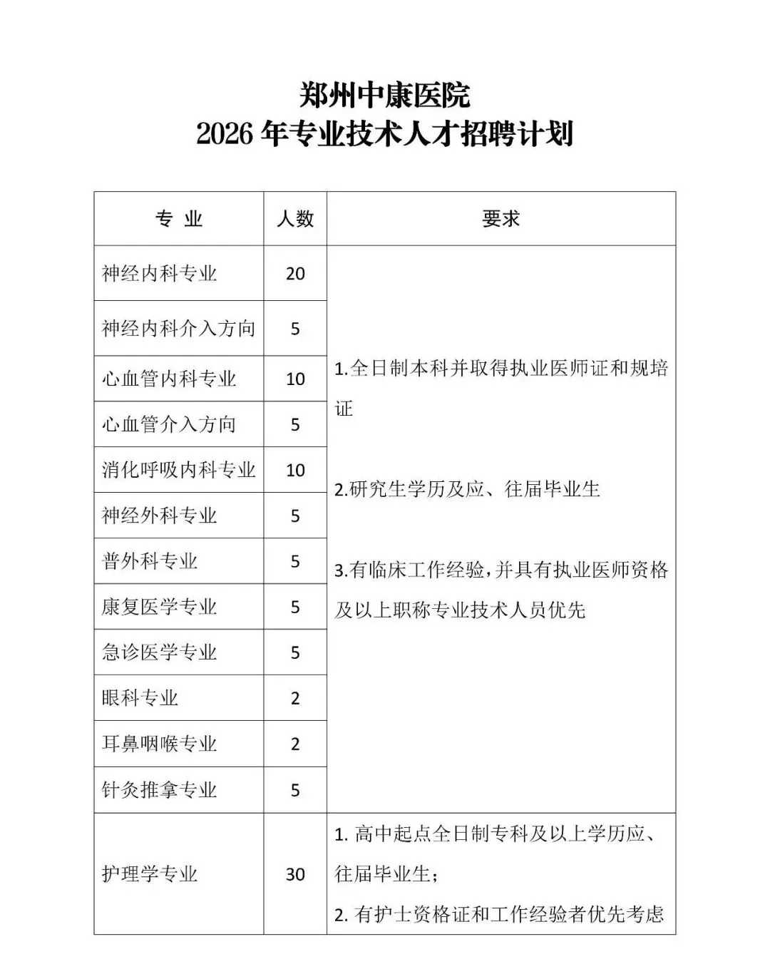 (郑州中康医院2026年招聘报名表)