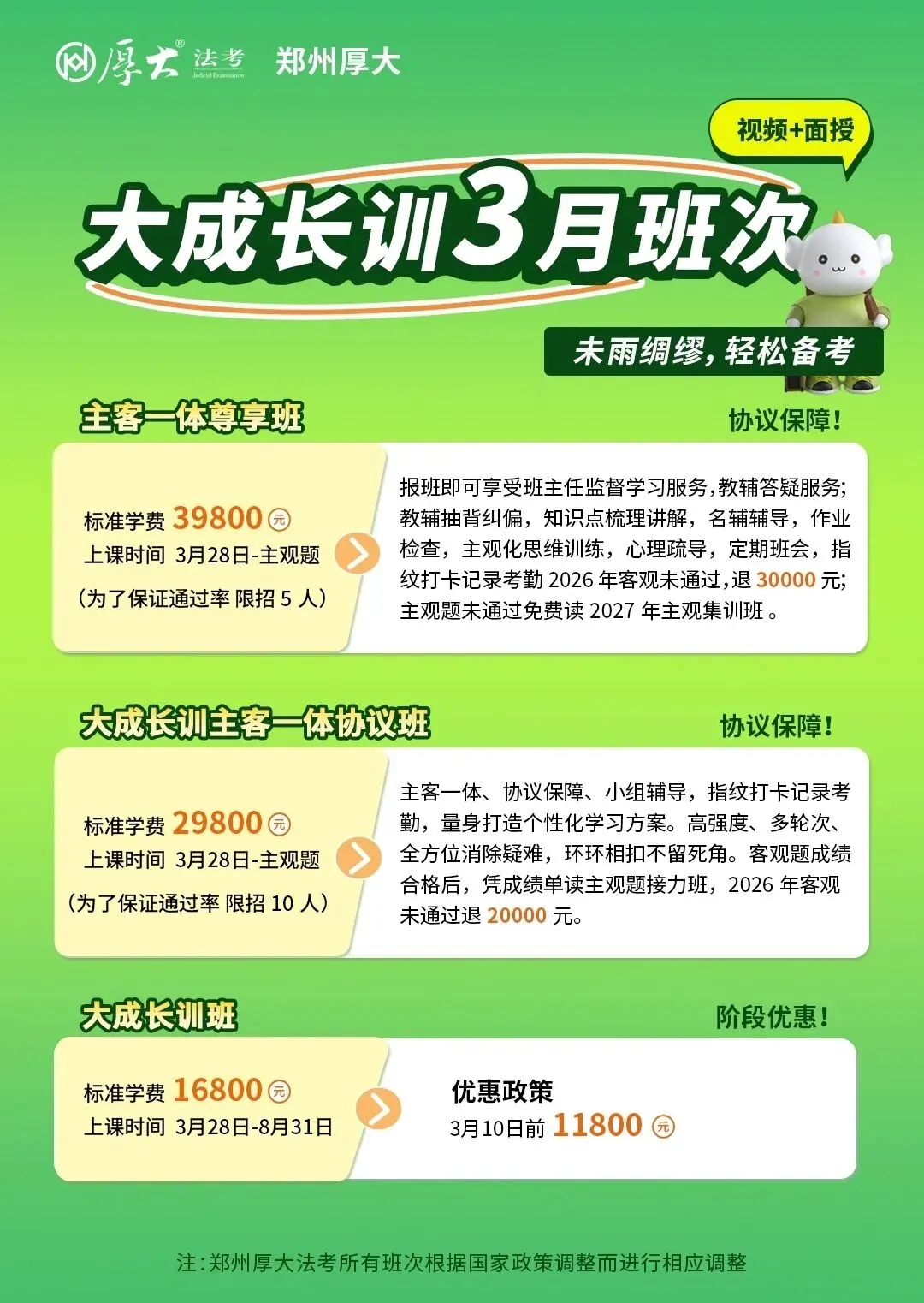 三月悄悄来啦!春天正花开,万物都在复苏呢~大家备考的热情,是不是也像这春天的气息一样越来越浓啦?如果还没完全燃起来,别着急哦!因为郑州厚大2026大成长训系列的面授课程马上要正式开课啦!这是一个全新的起点,咱们一起踏上这段充满希望和挑战的旅程吧!