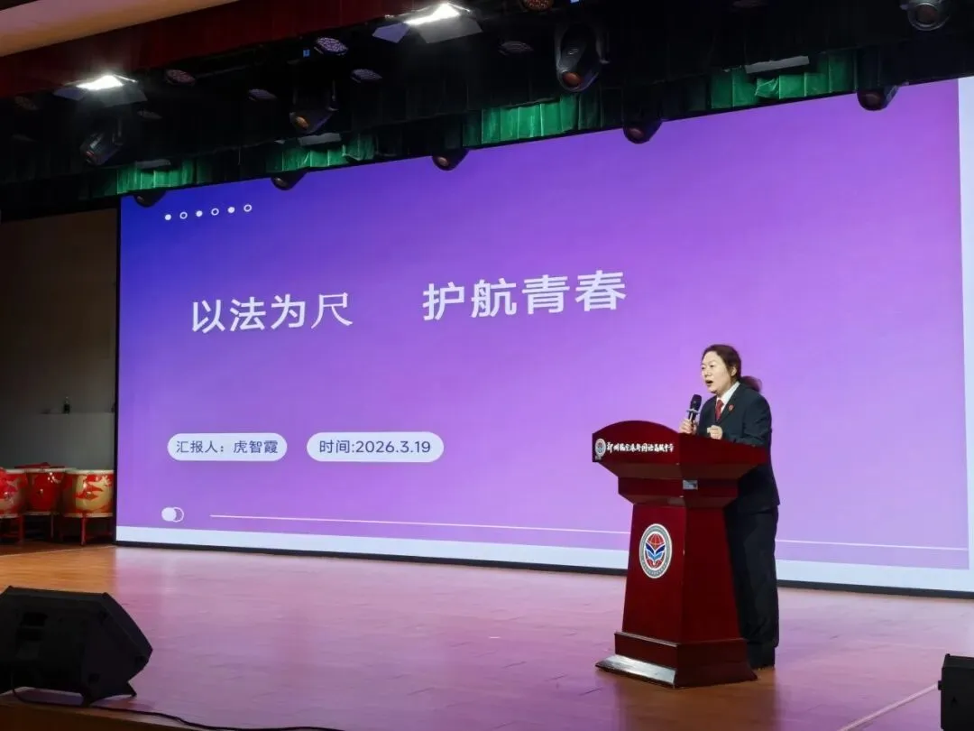 为增强广大学生的法治意识,引导他们树立正确的法律观念,助力同学们在青春道路上远离犯罪、健康成长,2025年3月19日,我校特邀请郑州航空港经济综合实验区人民法院虎智霞法官一行走进校园,为同学们带来了一场以“以法为尺,护航青春”为主题的法治教育讲座。