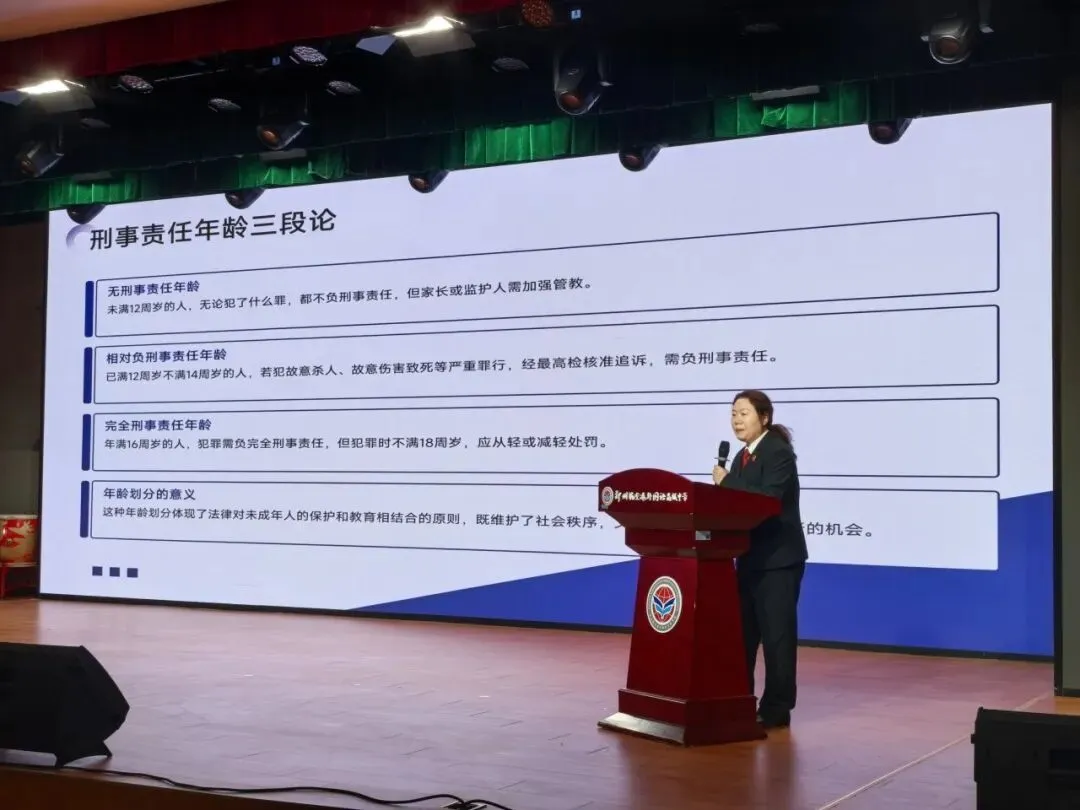 讲座中,虎智霞法官充分展现其深厚的法律专业素养与丰富的审判经验,以通俗易懂的方式深入浅出地讲解着与未成年人紧密相连的法律知识。她着重对刑事责任年龄的划分展开详细阐述,让同学们清晰知晓不同年龄段在法律层面所肩负的不同责任,明白法律既给予未成年人特殊保护,同时也对他们有着合理的约束。