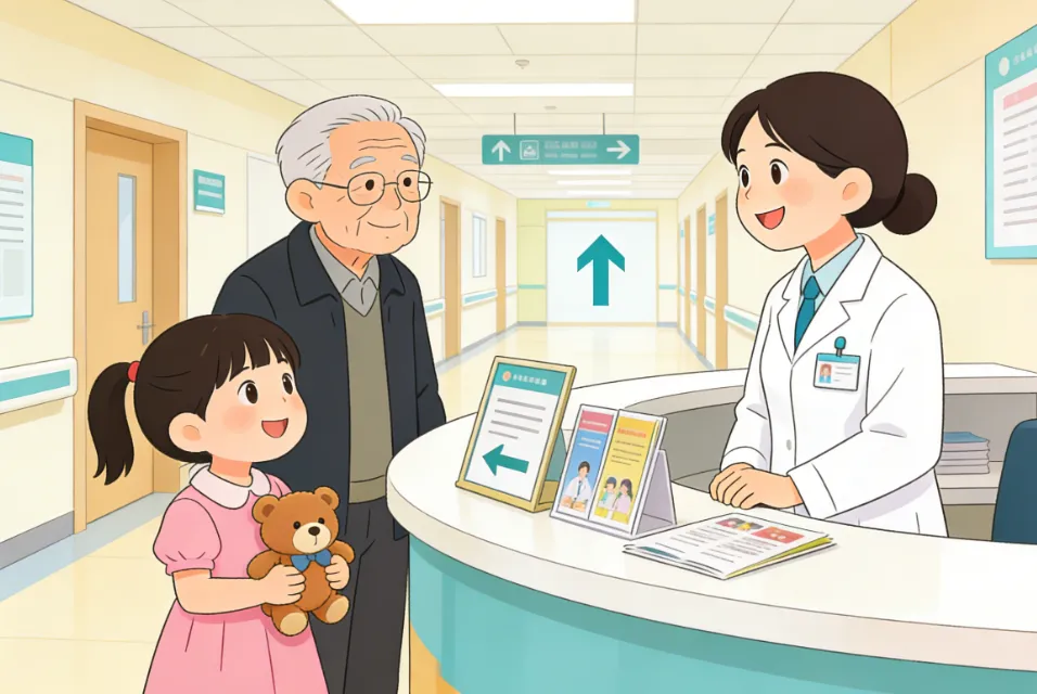 到达医院后,导诊人员会为您提供帮助。请主动告知陪同的是老人或儿童,以便获得更贴心的引导。在候诊时,请多关注家人的情绪。特别是孩子,可能会因环境陌生而焦虑。我们的医护人员在诊疗时会主动关注孩子的情绪,用鼓励替代说教。您的耐心陪伴和安抚,是稳定他们情绪的关键。