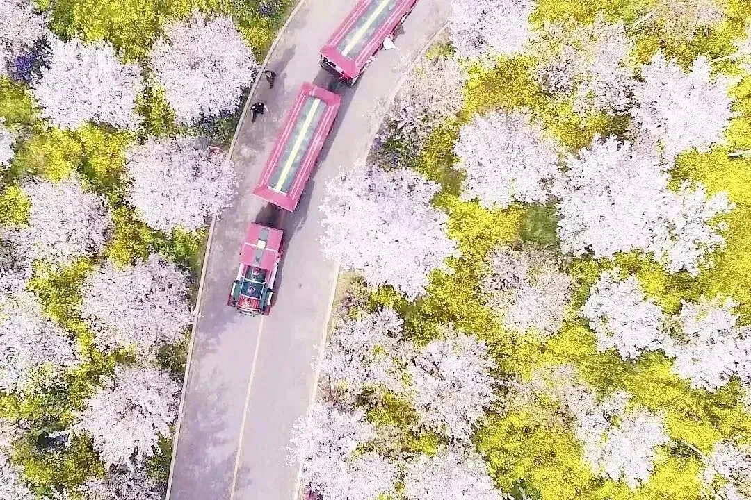 丰乐樱花园拥有5000亩樱花海,场面极为壮观。游客可乘坐小火车穿梭其中,夜间还有灯光秀,别有一番韵味。