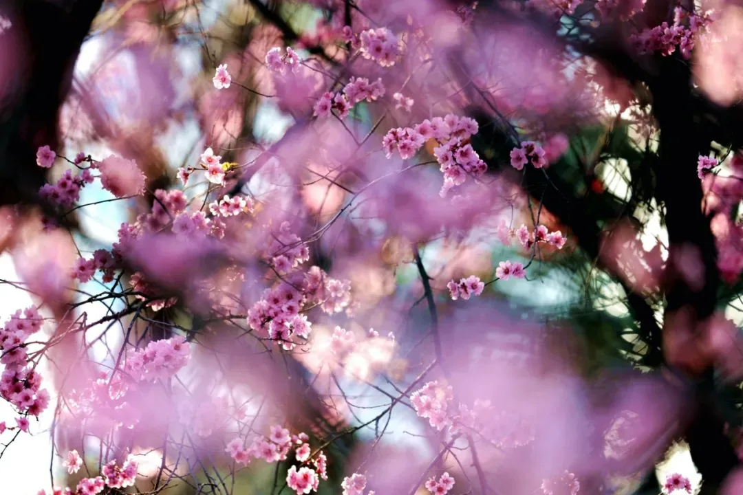 人民公园的樱花也已进入盛花期。从西门进去,椿寒樱、寒绯樱、染井吉野樱正满树繁花,风一吹,花瓣纷纷扬扬洒落。园内有38个品种、1000余株樱花,分布在樱花山、樱香园、樱菲园等处,满园的粉白铺天盖地,正是樱花季最热闹的时候。