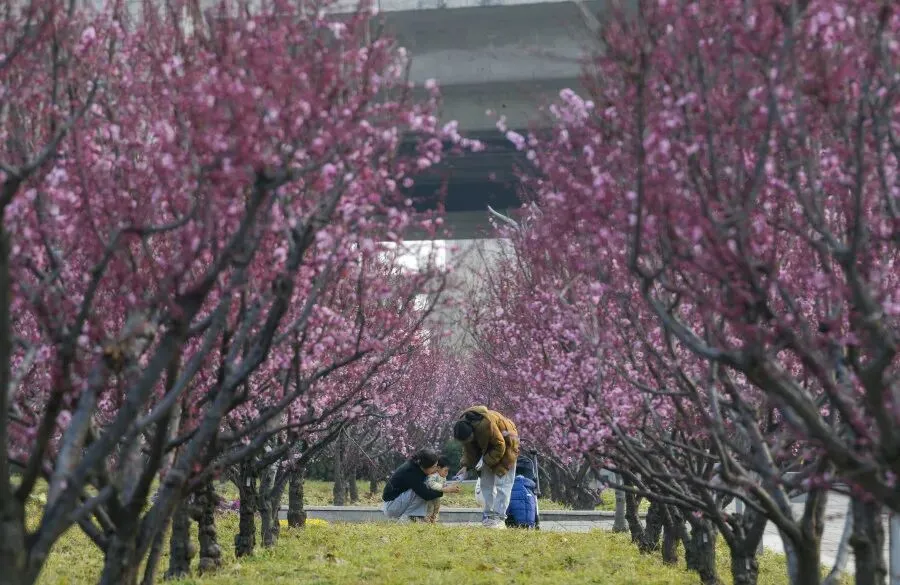 想看灼灼桃花,可以到郑州市动物园——第十二届桃花文化展正在那里举行,一边观赏动物,一边在北部的“桃花街”欣赏桃花,体验感很是独特。若是向往山野间的天然桃林,巩义青龙山是个好去处。三月里,山中的桃花沿着坡势成片开放,走在其中,真有几分桃源之意。不想跑远的话,郑州植物园西门南侧的桃林品种也不少,这会儿正开得热闹。同在植物园南门附近,700余株美人梅灿若云霞,花香淡淡,走近了才能察觉。
