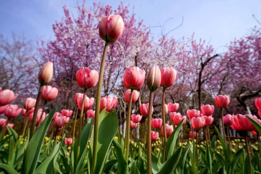 3月24日,人民公园第二十九届郁金香花展即将拉开帷幕。届时,近20万株的郁金香将缤纷盛放,红的黄的紫的粉的,整整齐齐开成一片彩色的织锦。“甜点”“水晶星”等名贵品种,也于今年首次亮相。园里同期还有1000多株樱花,树上的落樱和地上的郁金香相映成趣——春天就是这样,一边告别,一边盛放。游人从花间走过,相机咔嚓声不断,谁都想把这绚烂留住。