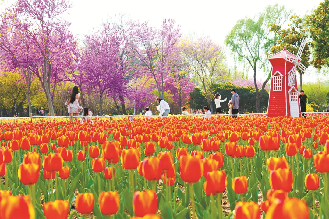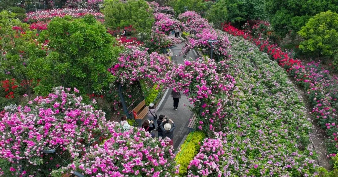 等到4月,月季该上场了。郑州月季公园里40万株月季姹紫嫣红,一直开到5月中旬。大朵大朵的月季开得不管不顾,像是要把春天多留些日子。西流湖公园北区的下沉月季花海同样不容错过,数千株月季依地势铺展,花开时节如彩色瀑布倾泻,别有一番滋味。