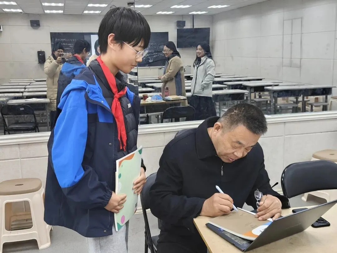 李丽英老师的课刚结束,几位意犹未尽的学生便主动围住任景业教授,请他签名留念。孩子们兴奋地说:“今天的课特别好,我们喜欢这样上课!”这稚嫩而真诚的表达,恰是对分享式课堂最好的肯定。