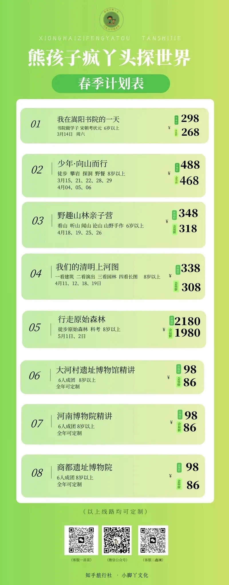 2. 亲子观察(60min):1台望远镜,沿固定路线慢走