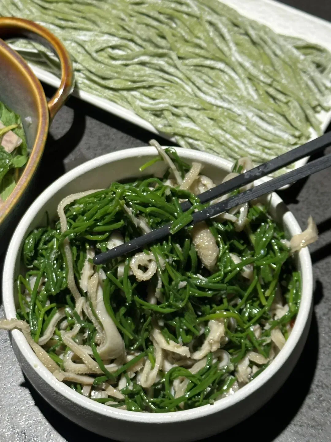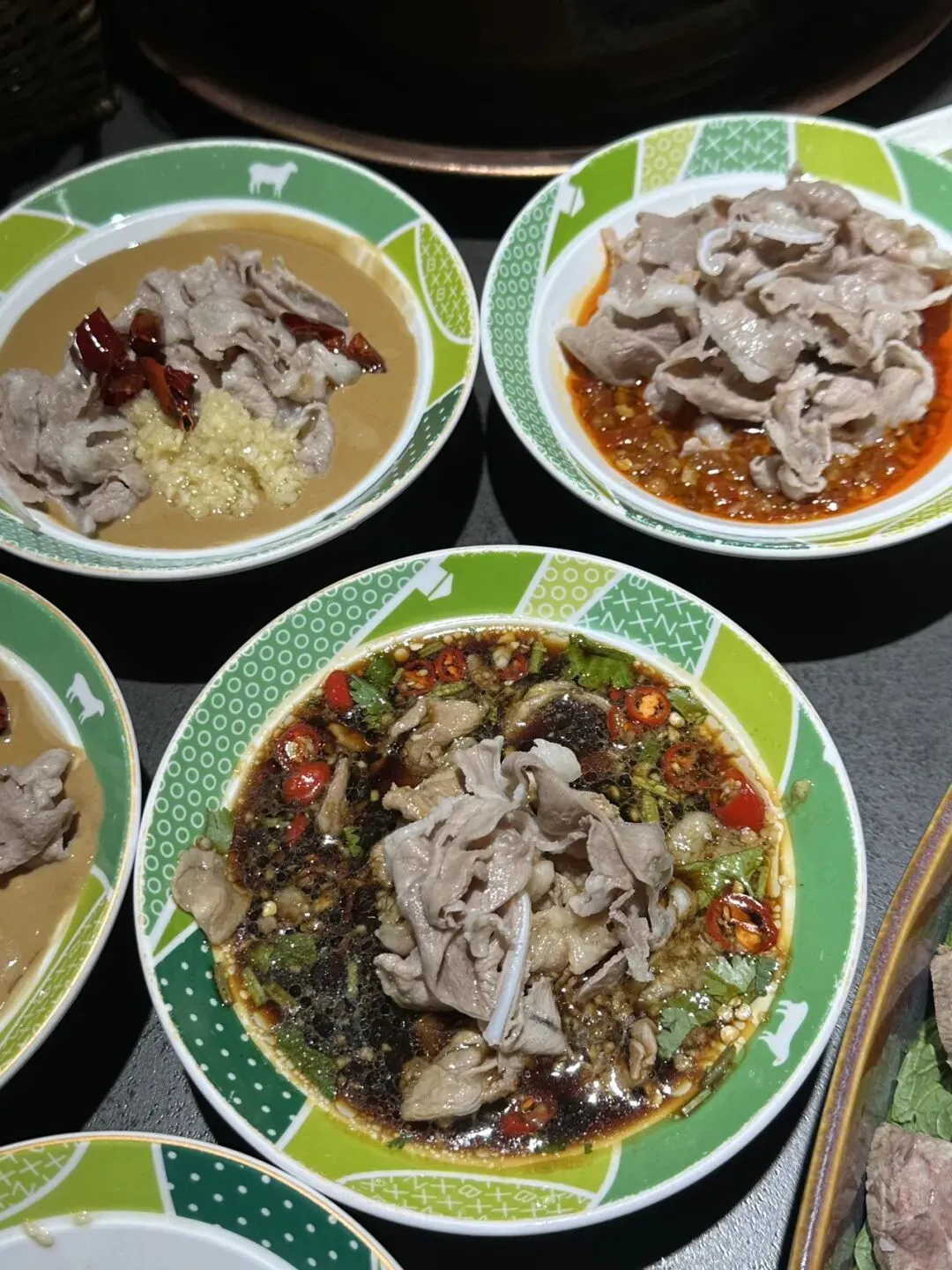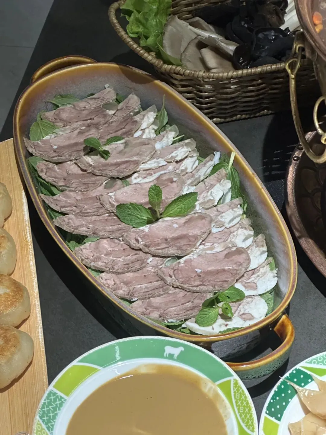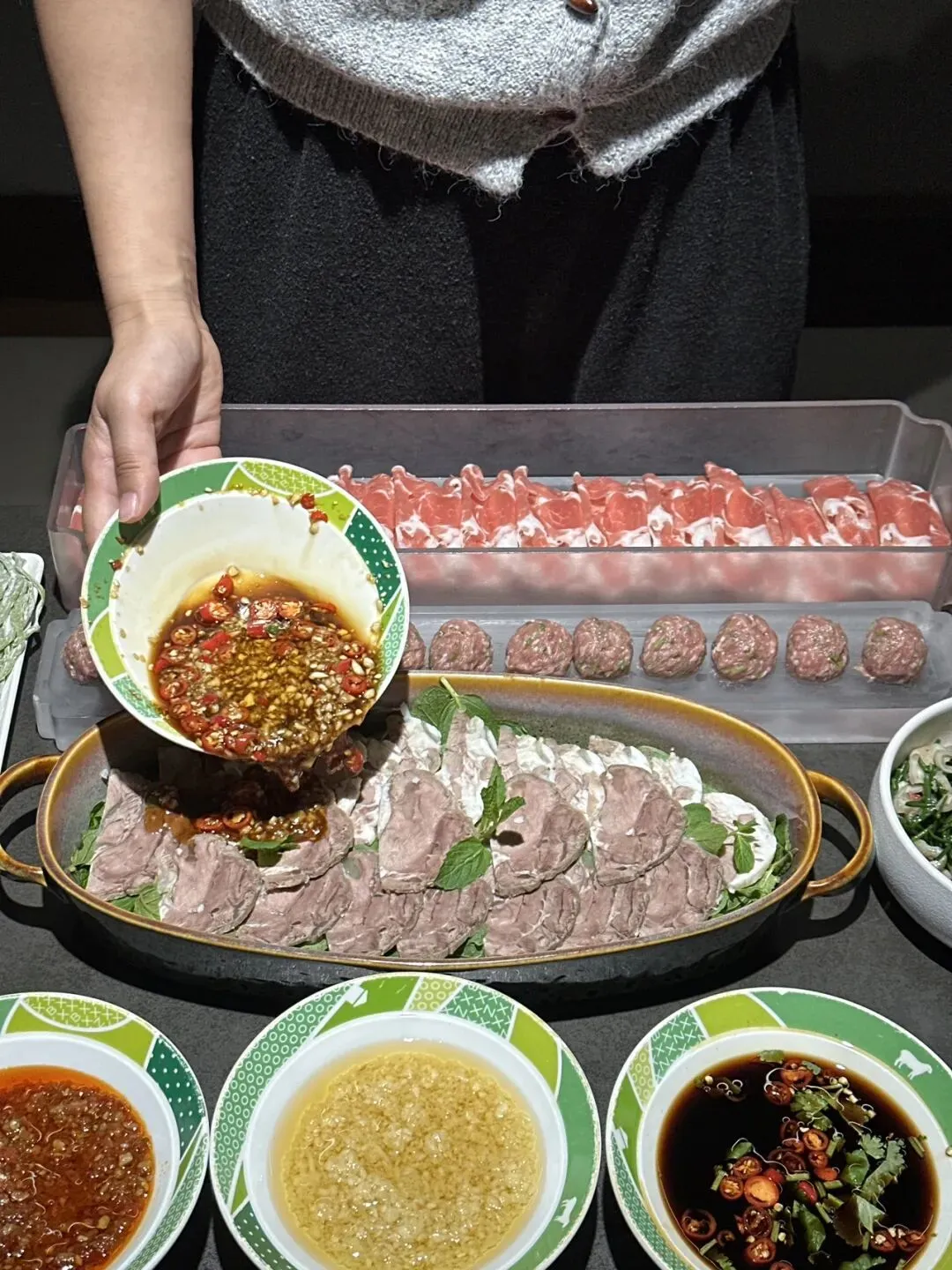 沙葱拌羊肚也一定要点,脆爽开胃,那股独特的辛香很上头!薄荷拌牛肉也很惊喜,薄荷叶的凉感把肉香衬得更清爽,不会腻。还有手工牛肉丸和菠菜面~
