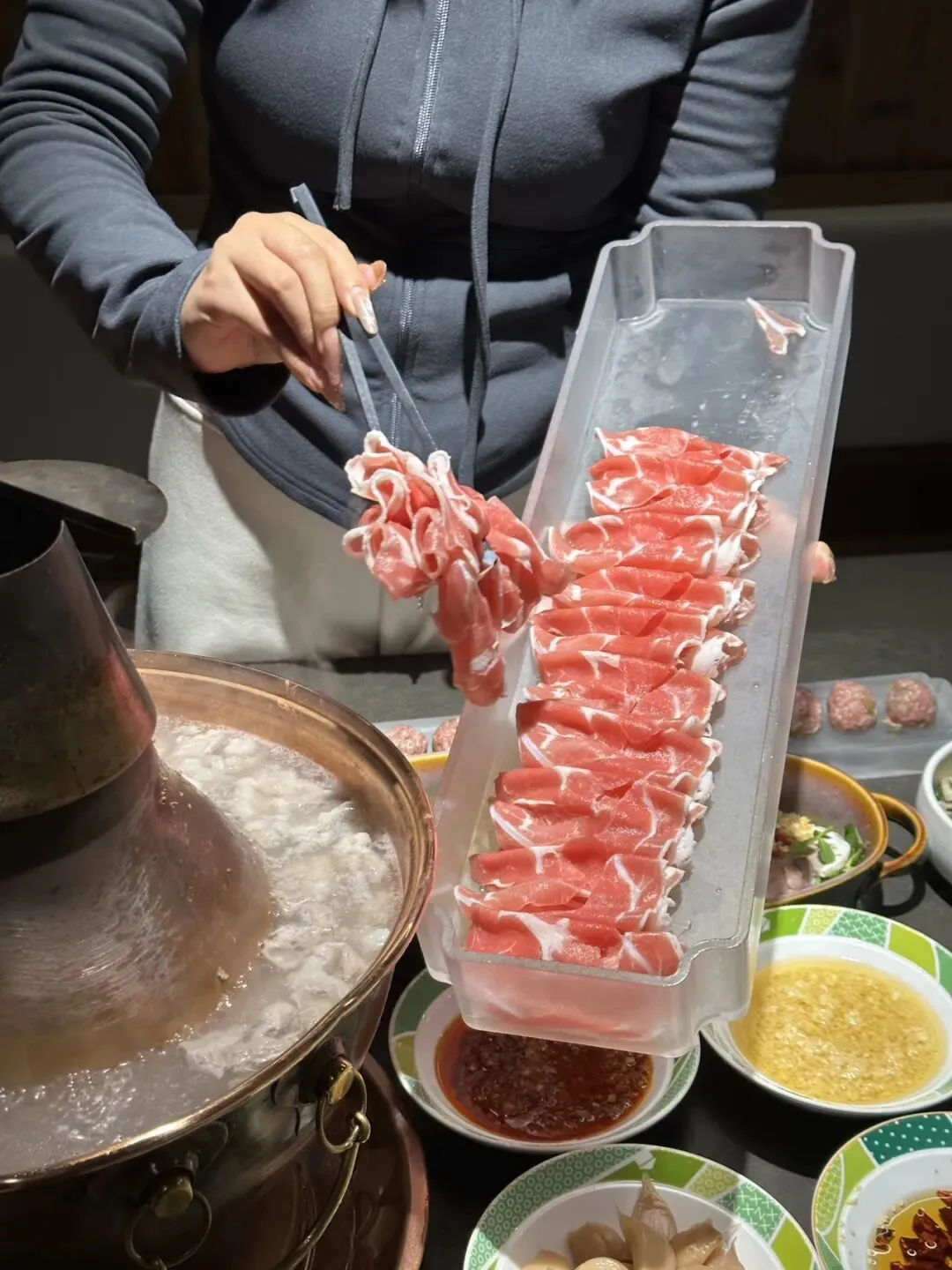 他们家巴尔虎羔羊肉是真的不一样,现切的肉下锅十几秒就变色,咬下去嫩得弹牙,关键是那股淡淡的奶香,完全没膻味