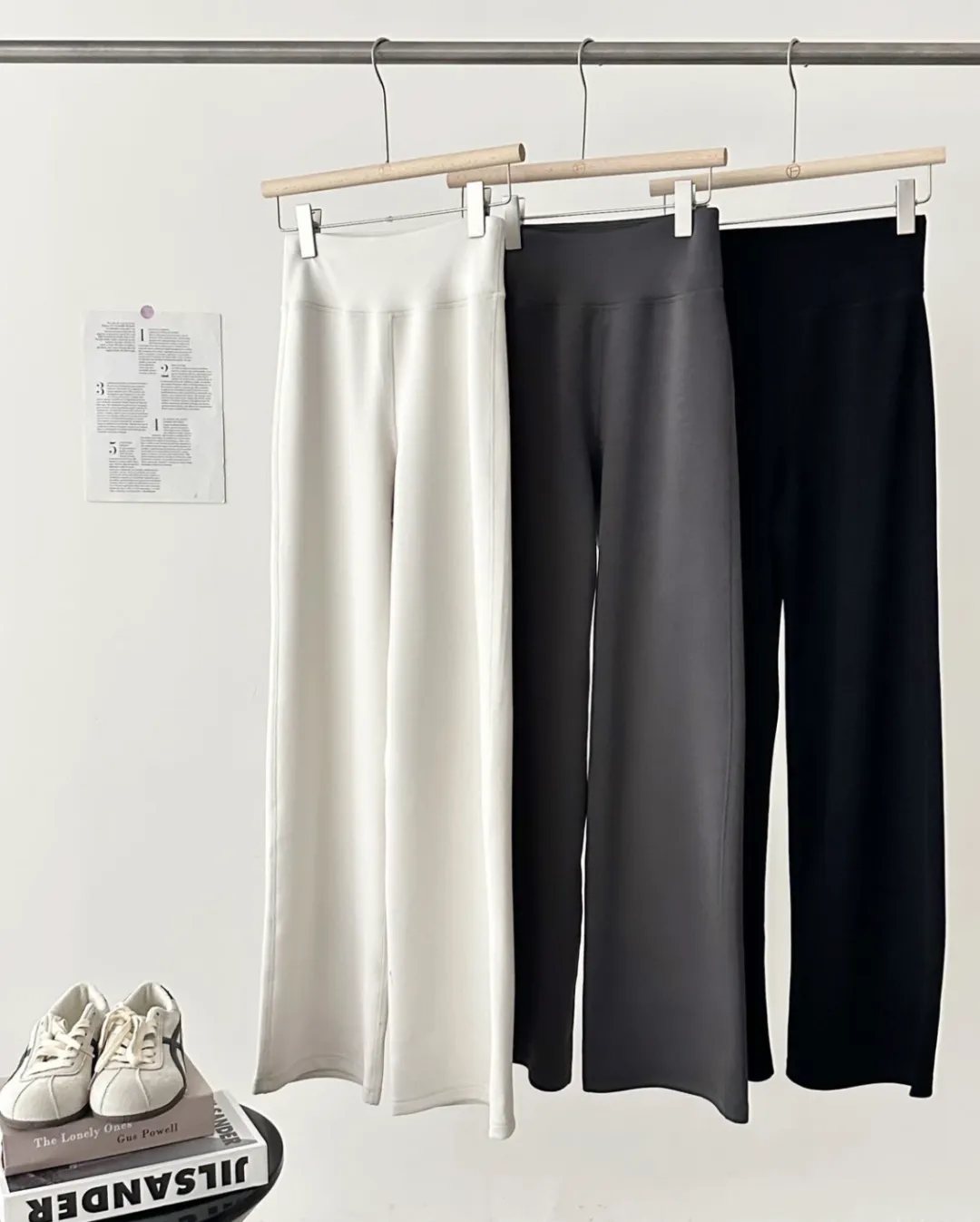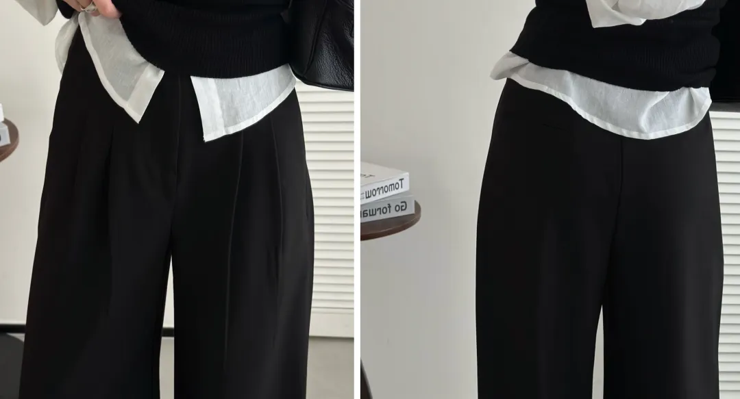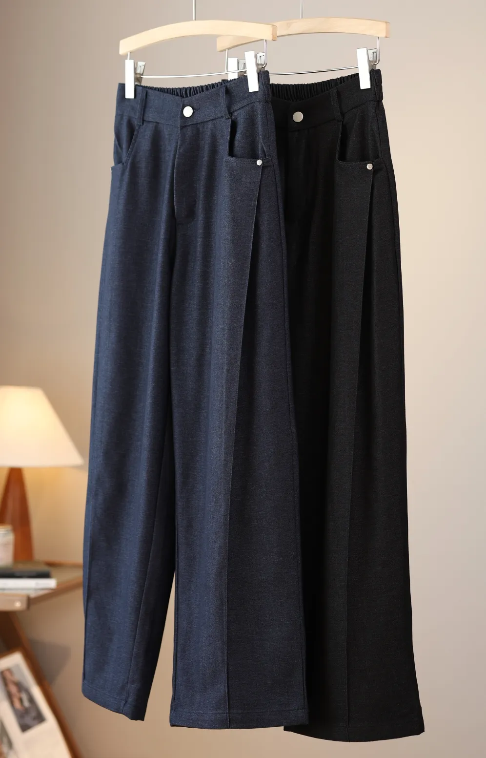 面料柔软度非常好,还不起球,不易变形,不易褪色!高腰阔腿+侧线拼接,特别能藏肉。穿上胯部看起来会更窄,小肚腩也能被很好地遮住。比一般的阔腿裤更显瘦,而且不会显得臃肿。