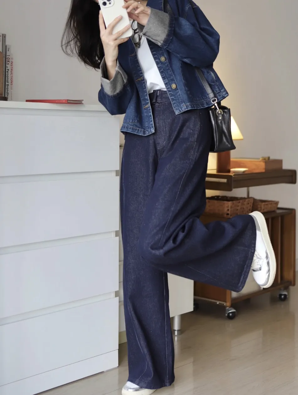 高支精梳棉织造的大理石波纹牛仔面料,久穿不易软塌变形,酵素洗水工艺让ta柔软又挺括,透气不闷还巨显高级!