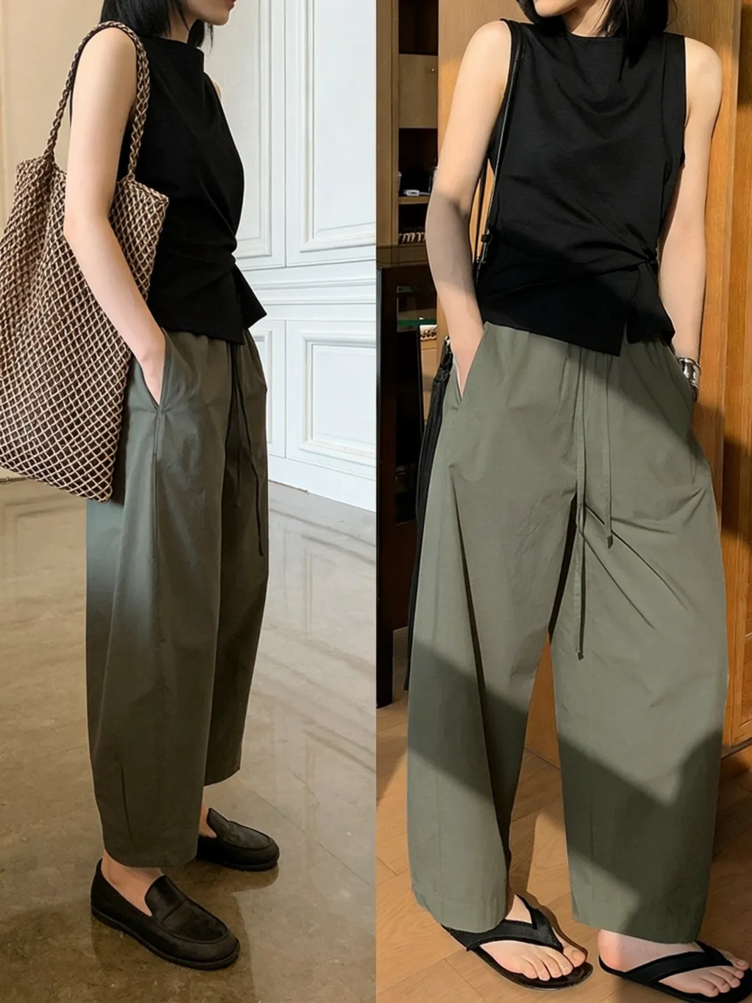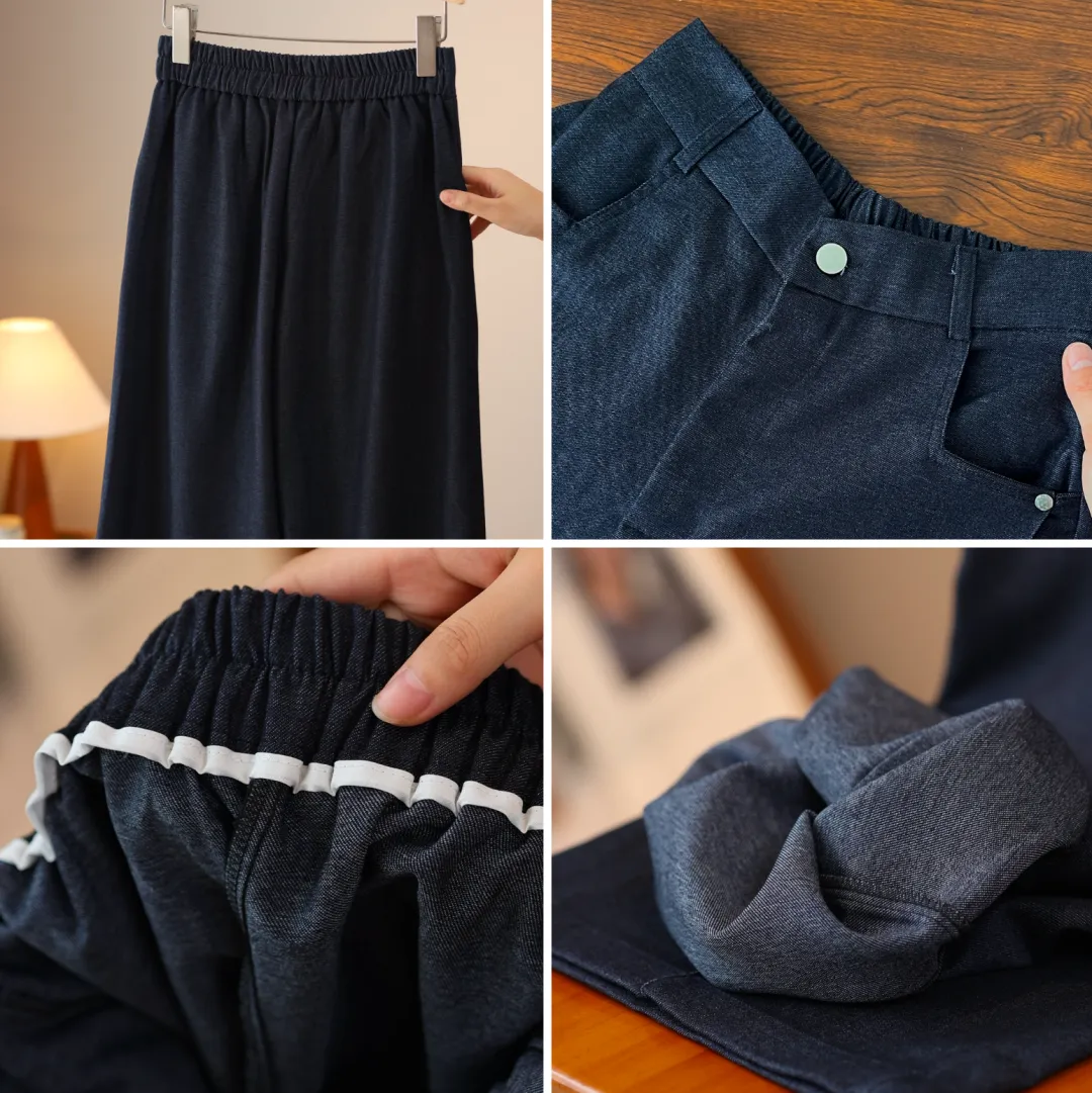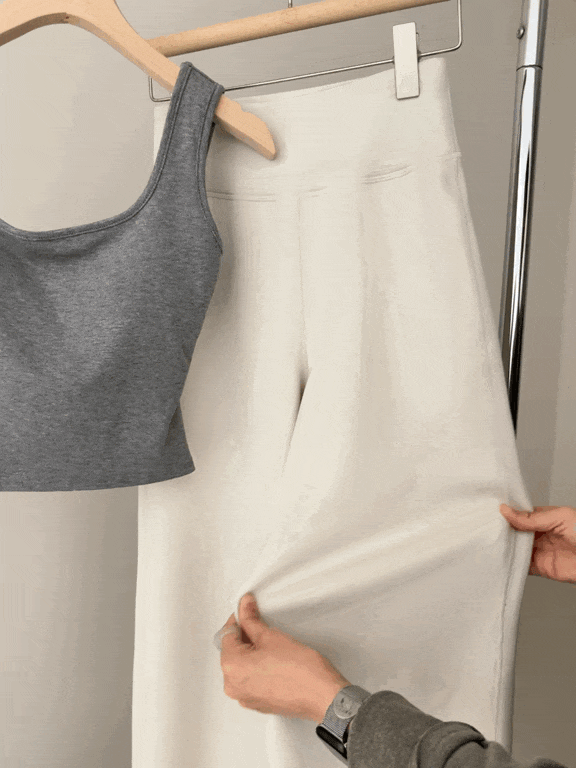 这条阔腿裤真的值得入手!用的是高级定制阳离子料子!摸起来软糯糯像云朵,吸水透气还抗静电!还能抗螨抑菌,贴腿穿巨舒服!简约又大气~