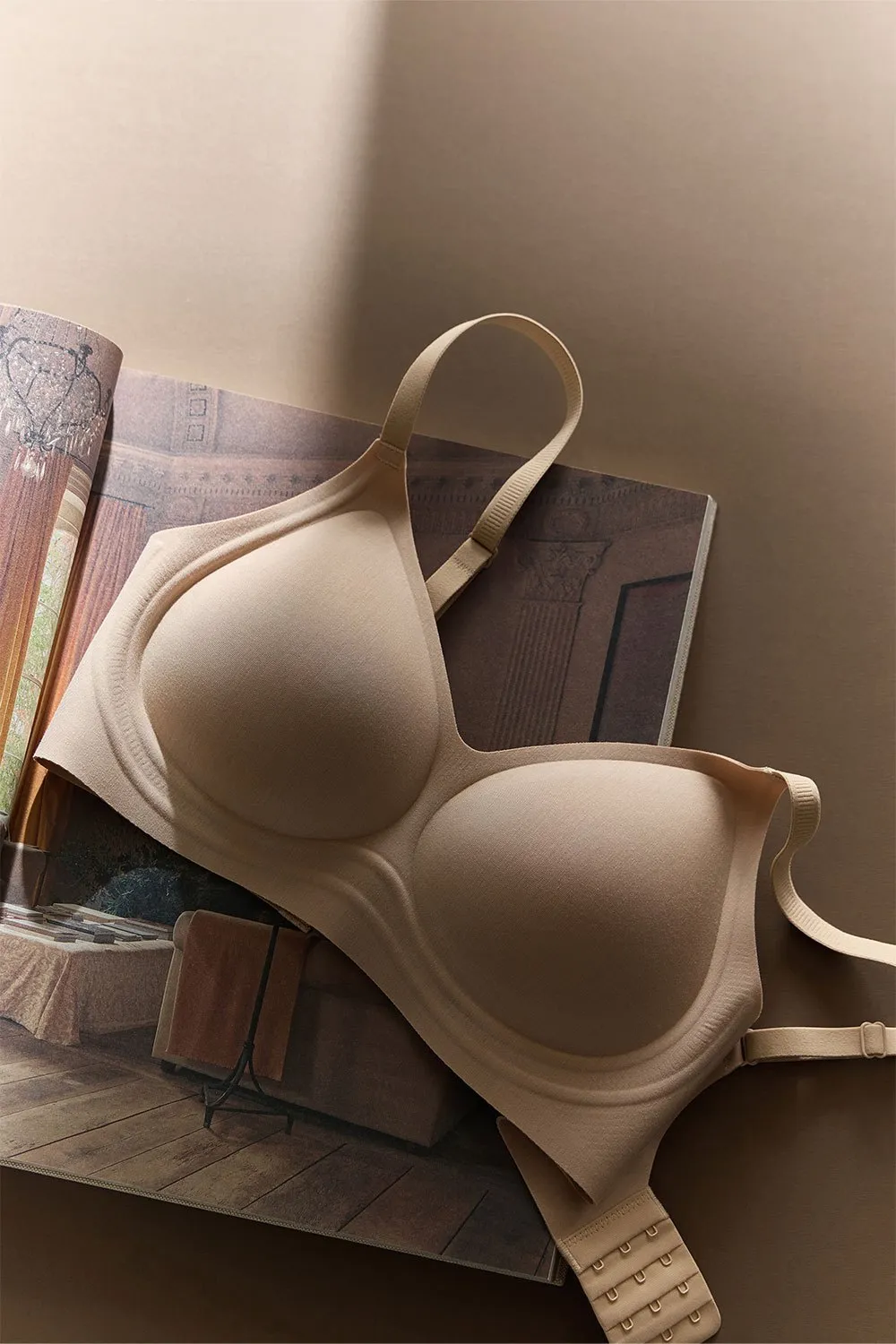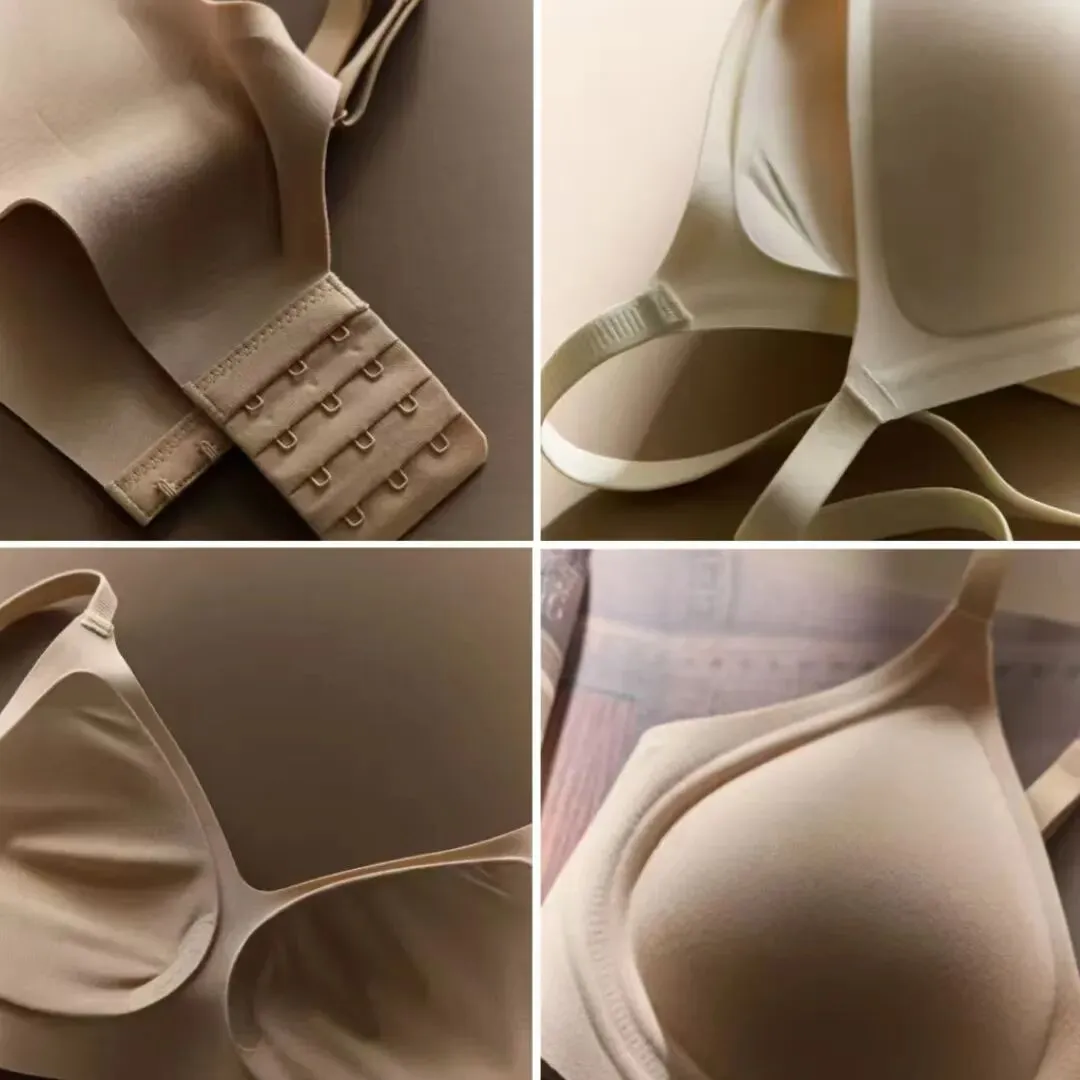 这款内衣简直就是隐形内搭天花板,谁穿谁离不开!ta完全没有钢圈的束缚感,下围的软支撑设计超级好,聚拢效果贼自然,胸型瞬间变好看。