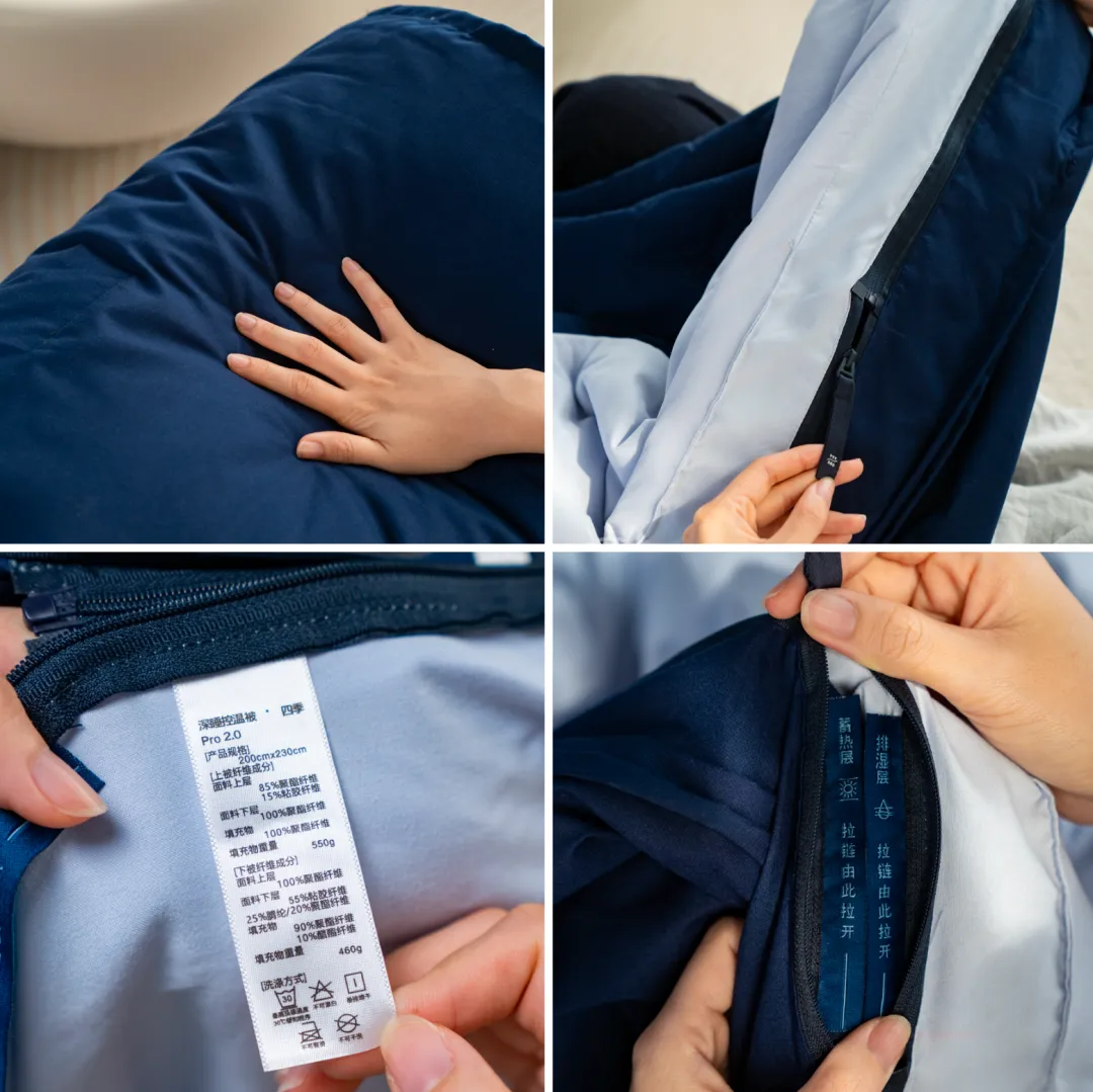 四季款2.0,一年四季都能盖的万能被!室温13-26℃刚需!上层动态蓄热,下层吸湿排汗,睡觉的时候,被子里一直温温柔柔的,早上起来被芯还是干爽的,再也不会闷汗粘身啦~