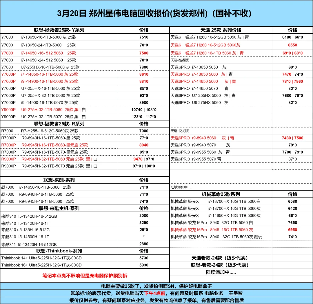郑州丽景机械革命03.21电脑渠道报价