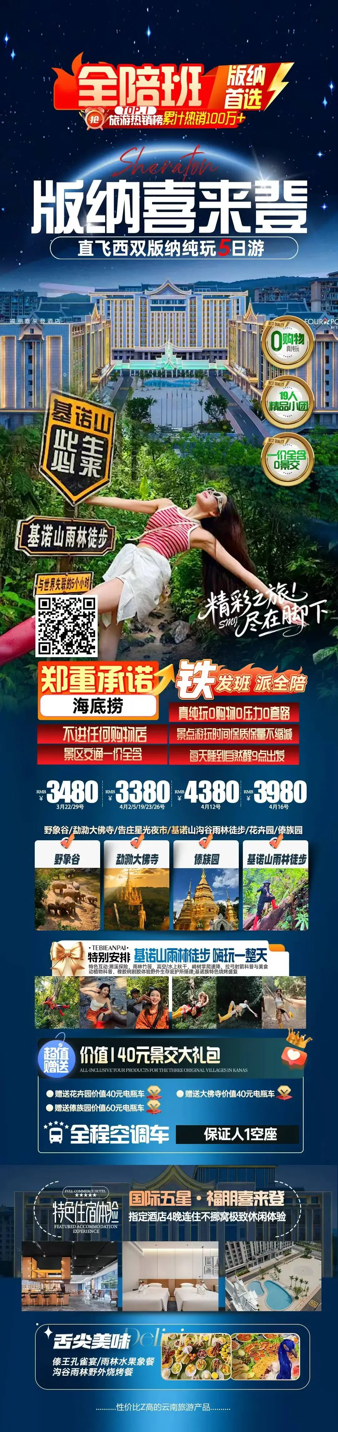 3月29号【版纳喜来登】郑州直飞西双版纳0购物0自费双飞5日3480元