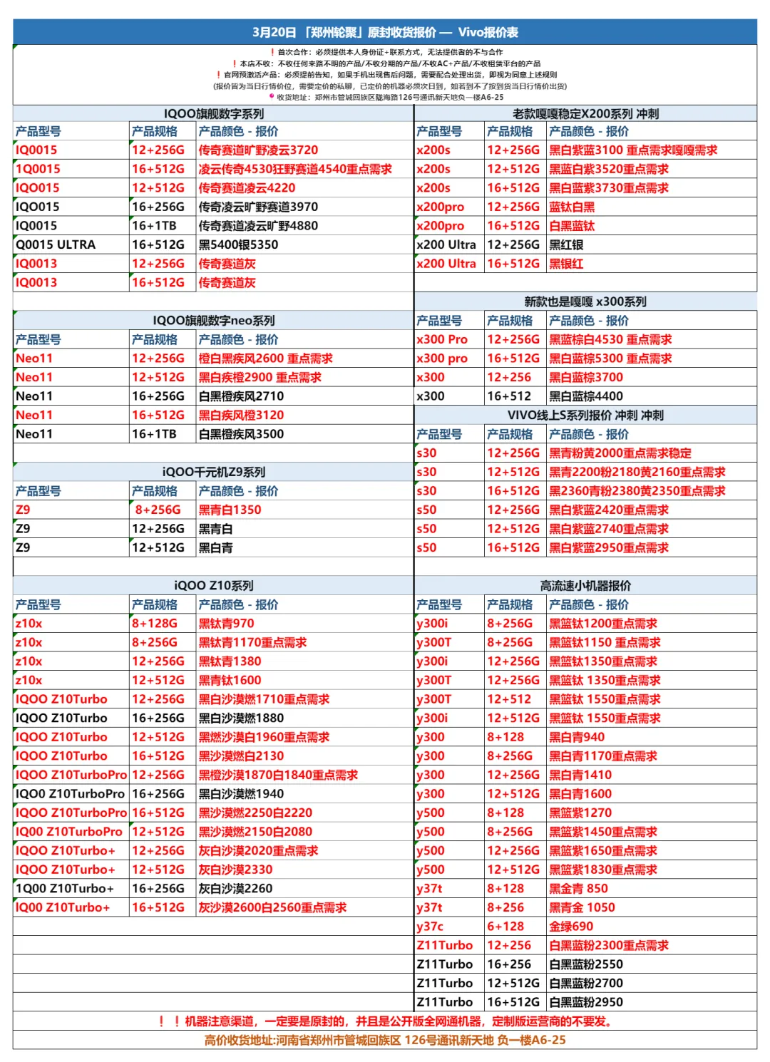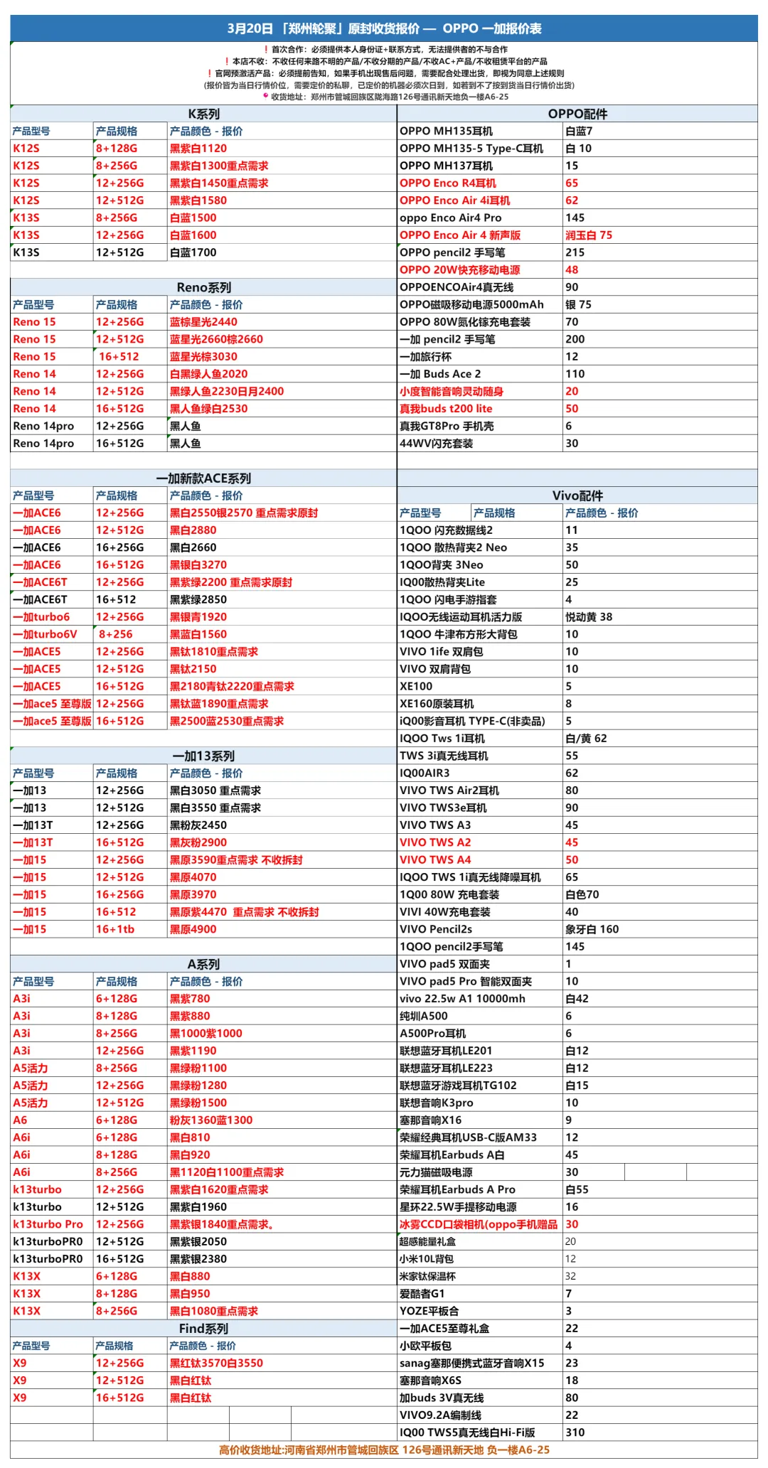 郑州和泓数码2026-3-21手机批发报价