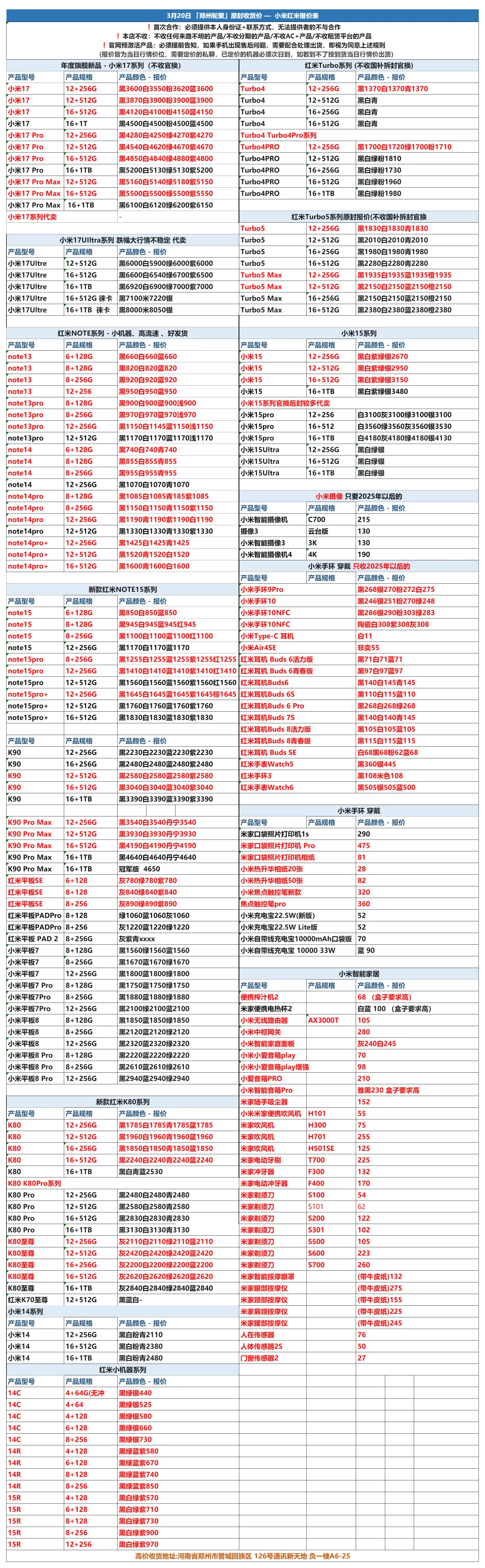 >郑州轮聚通讯 2026年3.20日数码报价更新