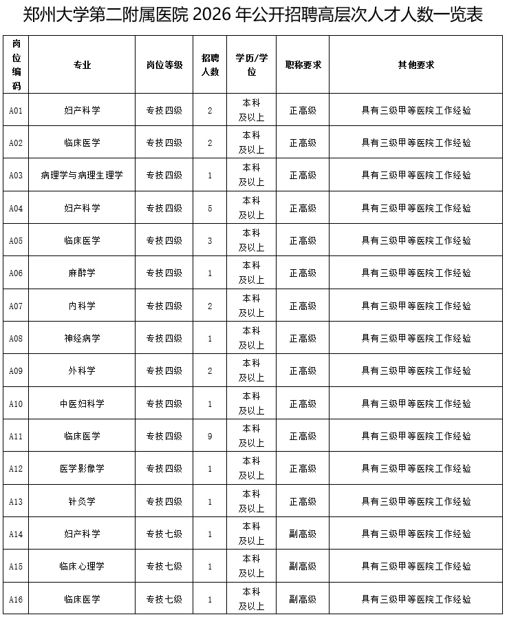 根据我院岗位空缺情况和医院发展需要,招聘博士研究生105名。详见附件1《河南省中医院(河南中医药大学第二附属医院)2026年博士研究生招聘计划》。