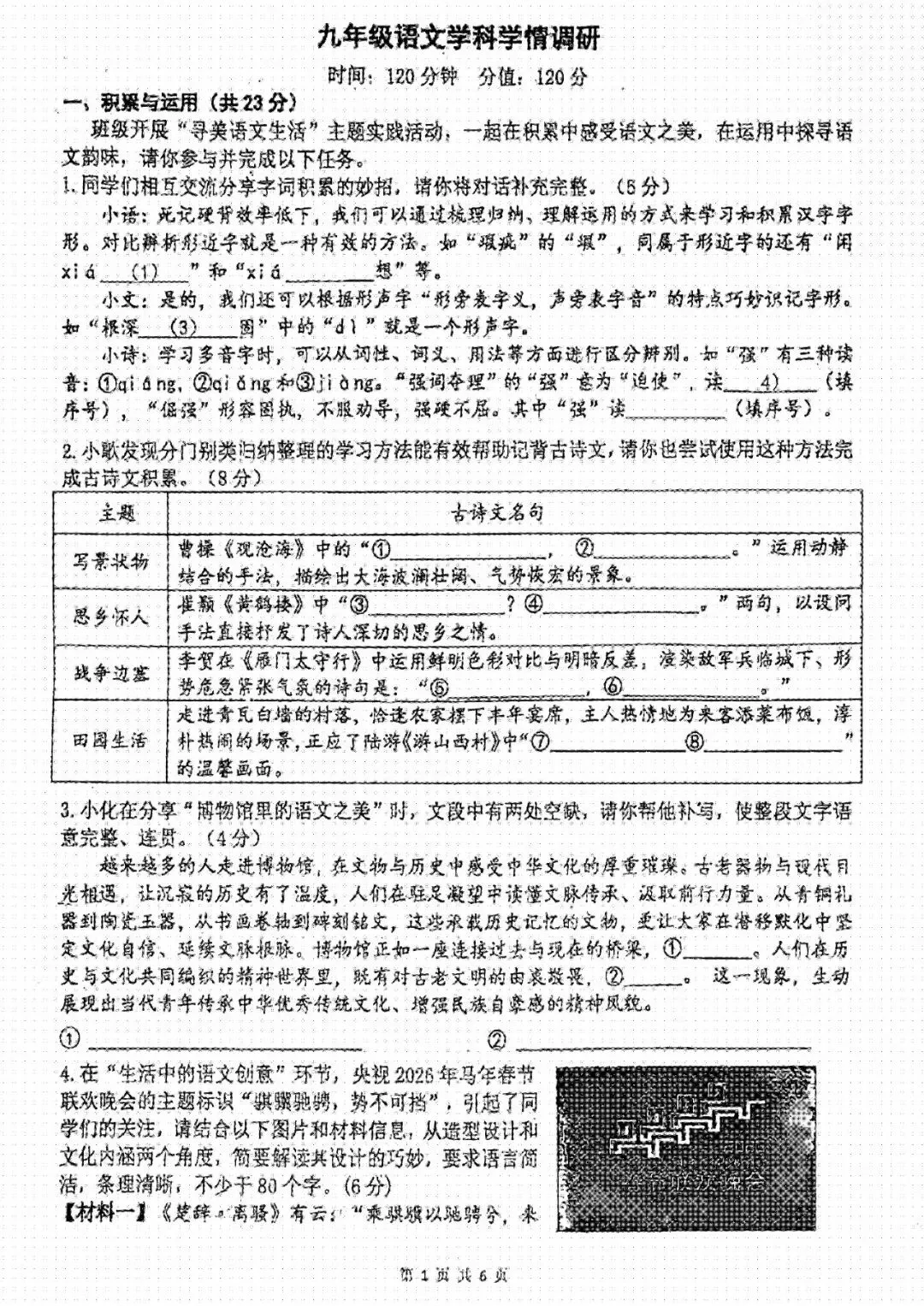 2026语文试卷+答案