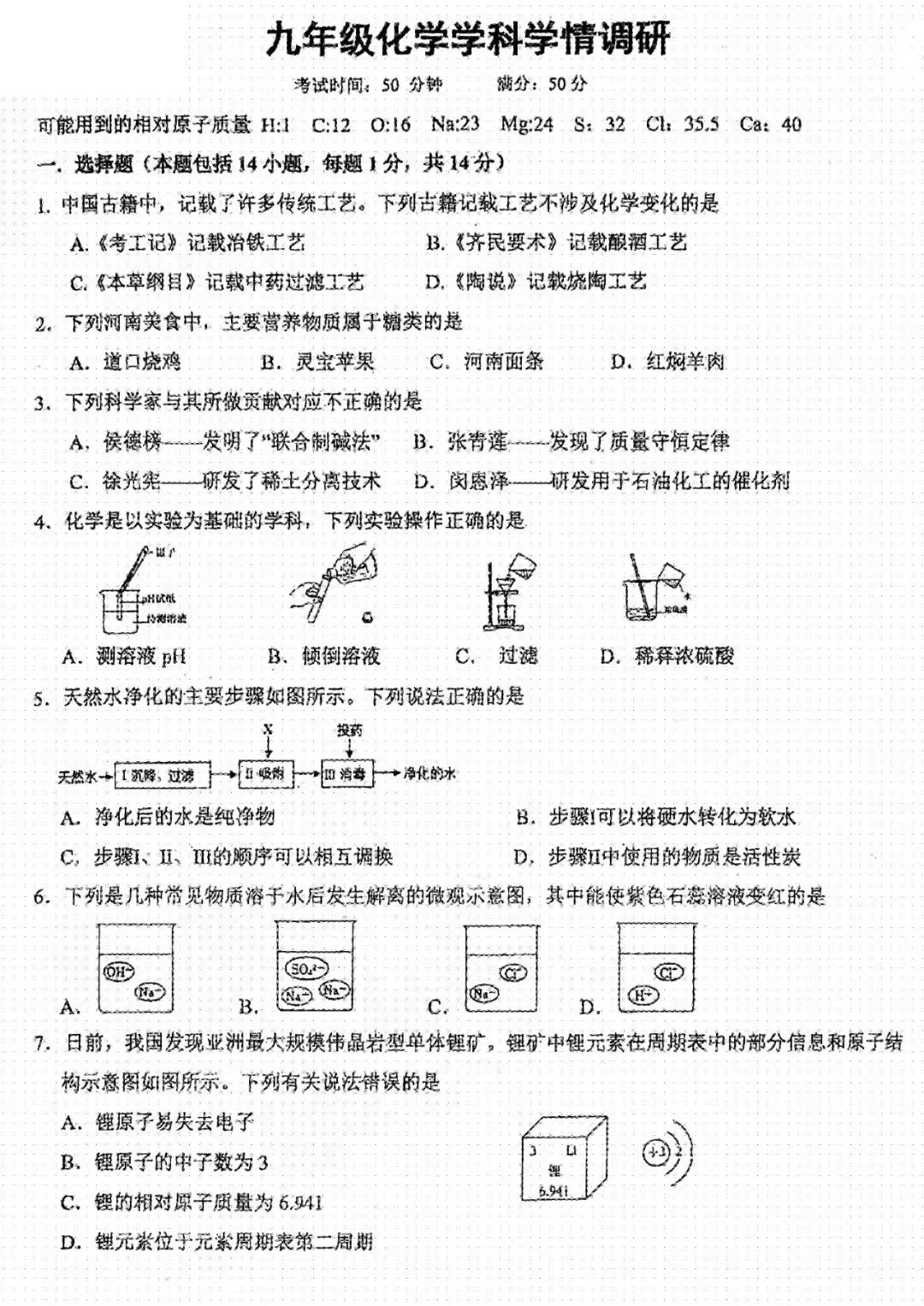 2026化学试卷+答案