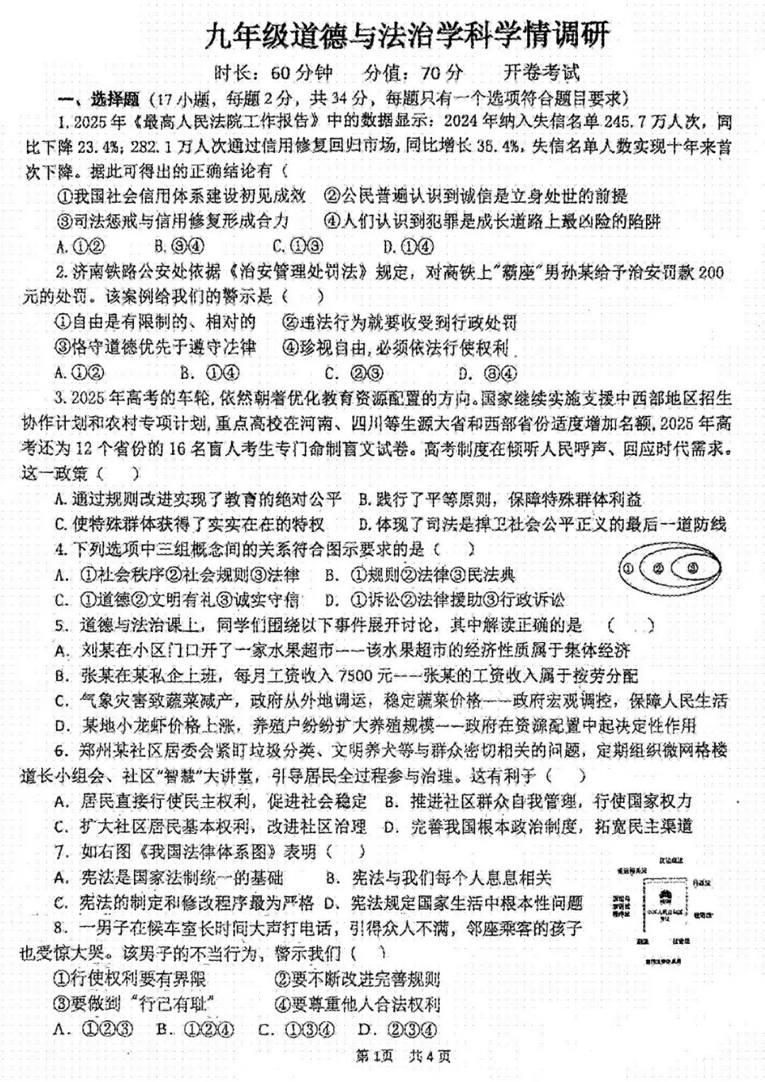 2026道法试卷+答案