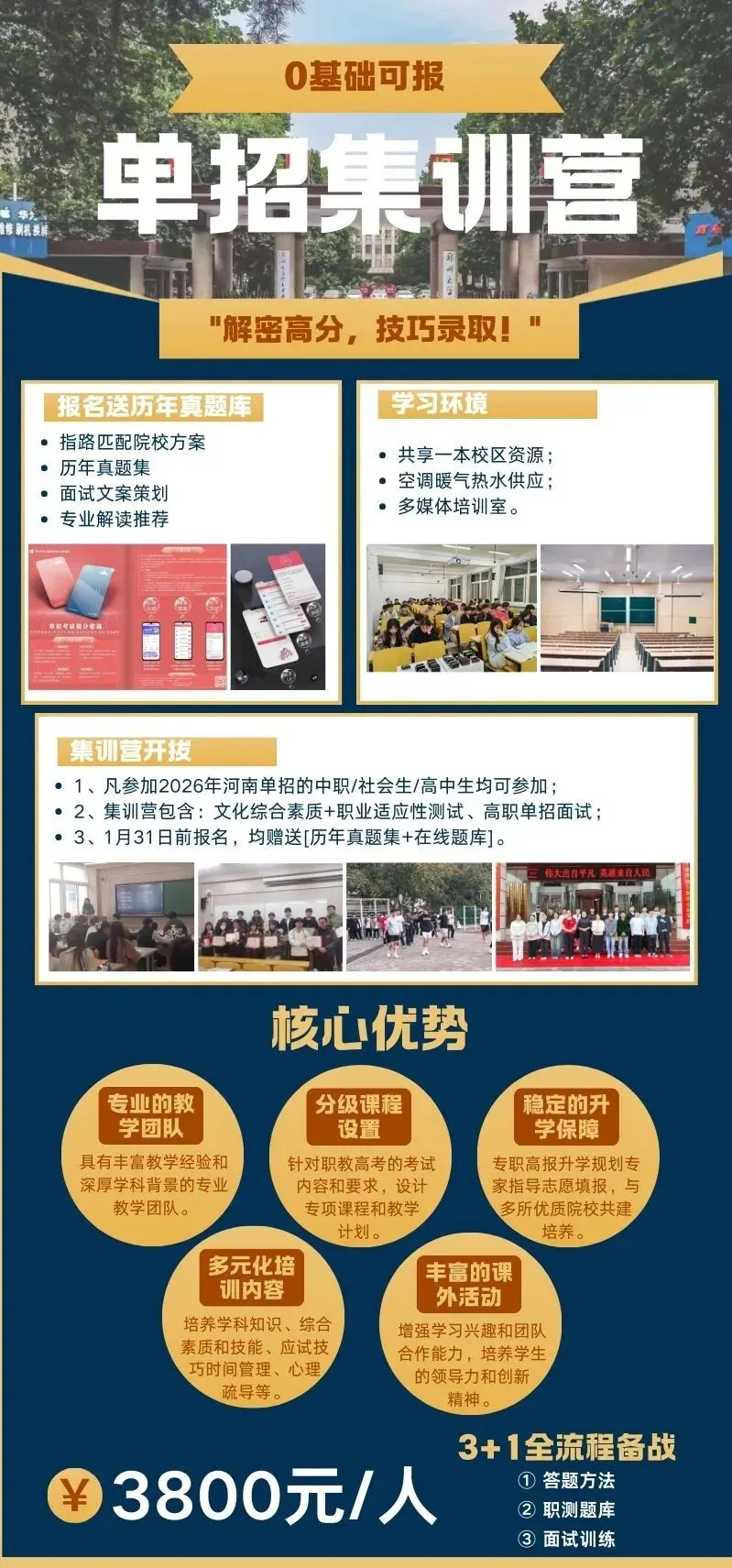 文化素质评价:主要考察考生文化课基础知识,包含语文、数学、英语三部分内容;