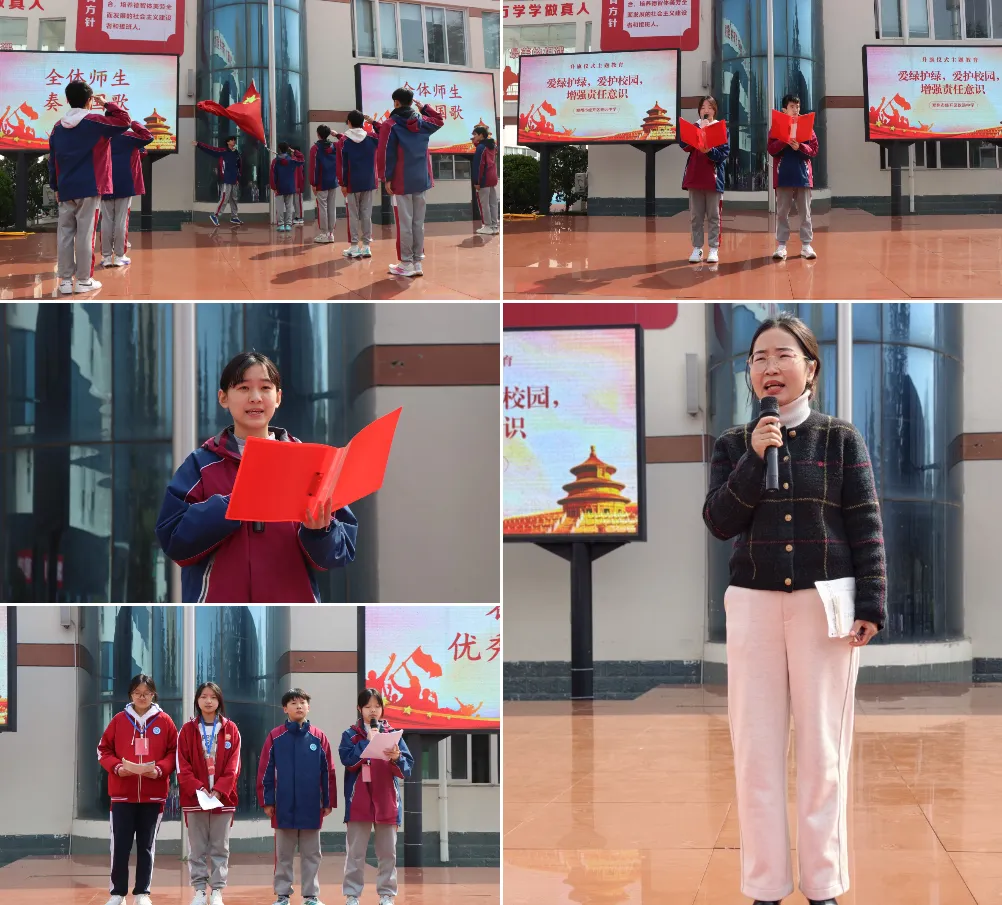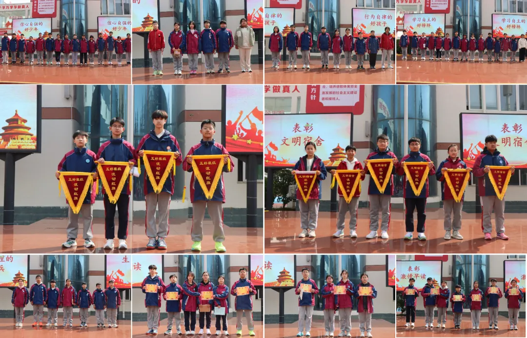 3月16日,我校举行第三周升旗仪式,本期主题为《爱护校园·增强责任意识》。高艺瑶同学、闫俊同学担任主持人,高田露同学作国旗下演讲。仪式对 “五好少年”“五好班级”“文明宿舍” 及 “激情早读先进集体” 分别进行表彰。江校长发表总结讲话,针对 “校长信箱” 收集的建议进行集中反馈,明确调整方向与推进时限,畅通民主沟通渠道。