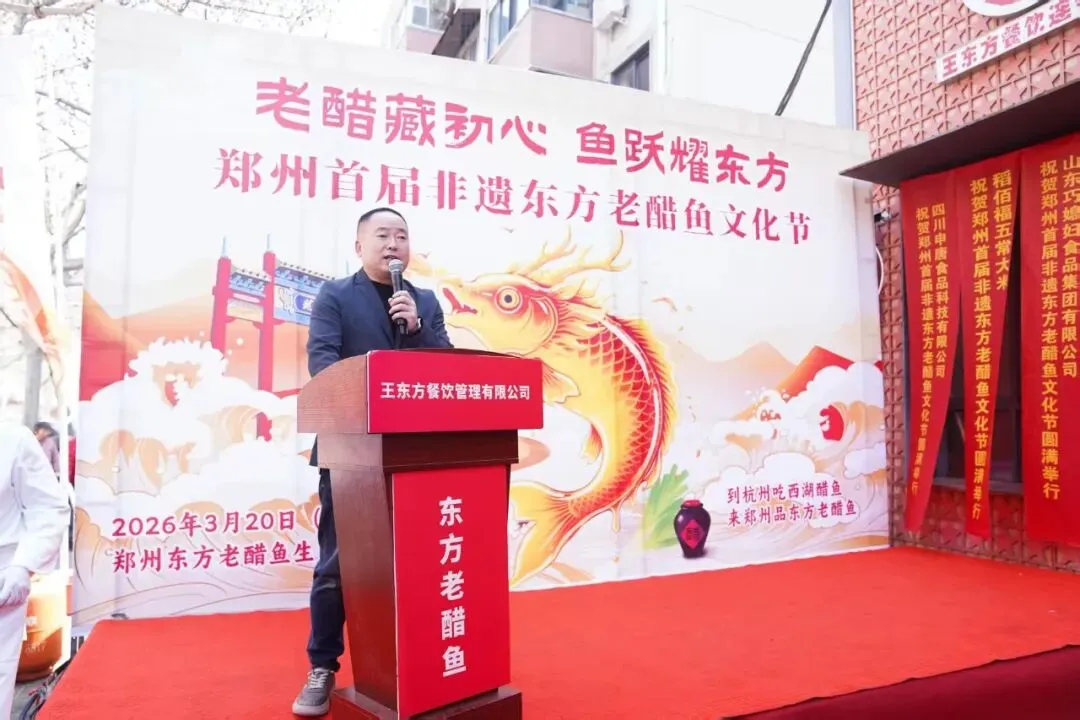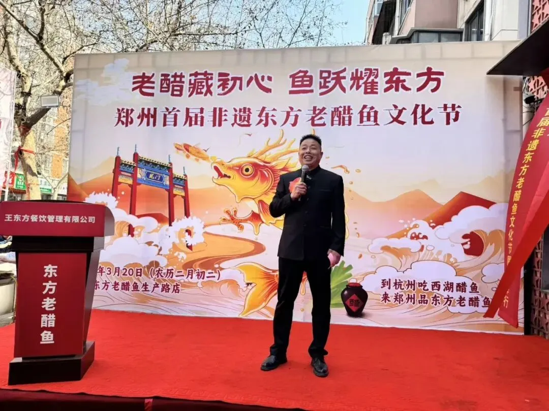 作为活动的东道主,东方老醋鱼创始人王红芋先生在致辞中深情回顾了品牌从“东方酱肉烙馍粥”到聚焦“东方老醋鱼”的蜕变历程。他坦言,举办文化节的初衷是为了让更多人了解老醋鱼与西湖醋鱼“同根同源”的历史脉络,并喊出了“到杭州吃西湖醋鱼,来郑州品东方老醋鱼”的行业自信。