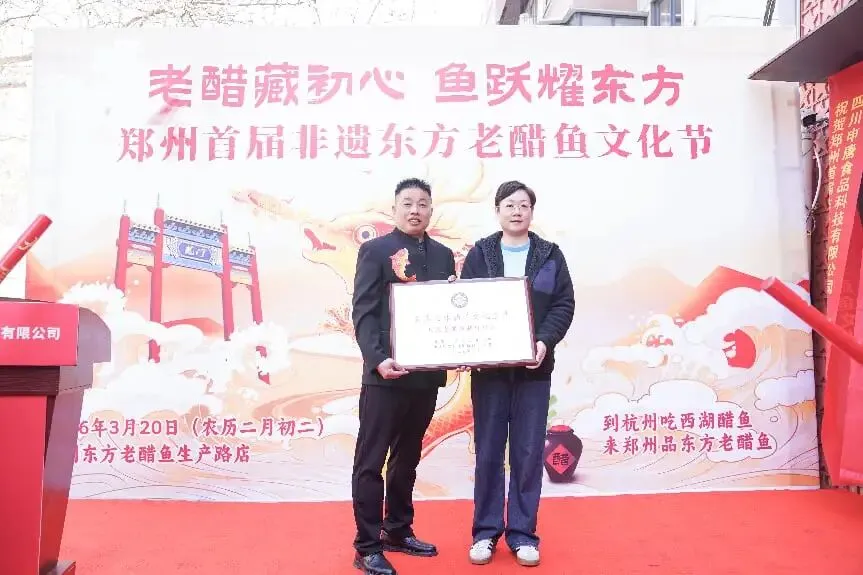随后举行的非遗授牌仪式上,东方老醋鱼凭借其独特的历史价值和精湛的制作技艺,正式获得非遗美食称号。