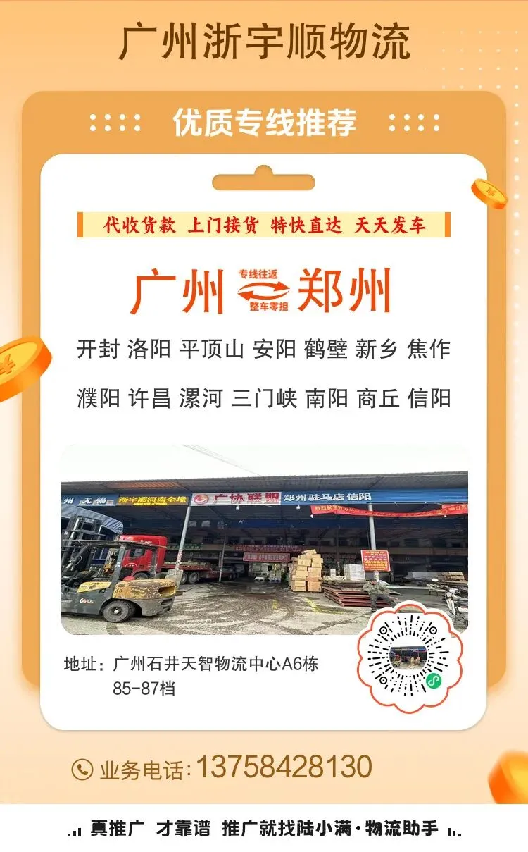 物流公司推荐:广州到郑州物流专线公司-广州浙宇顺物流
