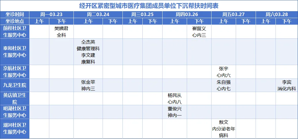 三甲专家在社区丨郑州经开区社区卫生服务中心专家坐诊信息(3月23日-3月28日)