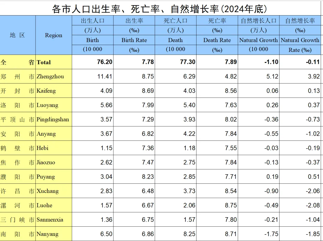 在全省各地市中一骑绝尘。除郑州外,部分其他地市的人口自然增长率为负,意味着人口在自然的减少。