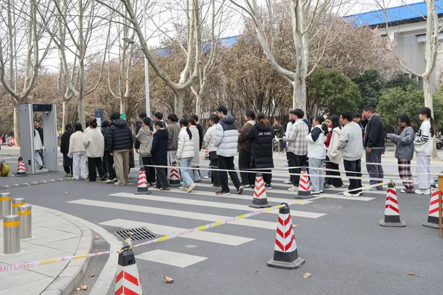 考试当天,全体涉考工作人员提前到岗、各就各位,考试各环节衔接有序、规范高效。考点严格按照考务管理规定,扎实开展监考人员安检、考生三级安检、身份核验等工作,依托智能安检门、金属探测器、身份验证终端等设备,实现考生入场的全方位、无死角检查;标准化考场视频监控系统、信号屏蔽系统全程稳定运行,做到考试过程可追溯、可核查,为考试公平公正提供坚实的技术支撑。