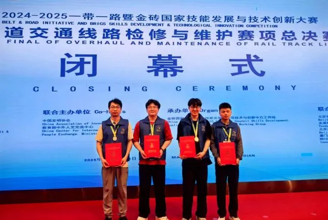 2025年5月,在2024-2025一带一路暨金砖国家技能发展与技术创新大赛轨道交通线路检修与维护赛项中职工组(张永福、赵世杰)和学生组(铁工22-15-18班曹浩、张裕普)双双斩获二等奖。