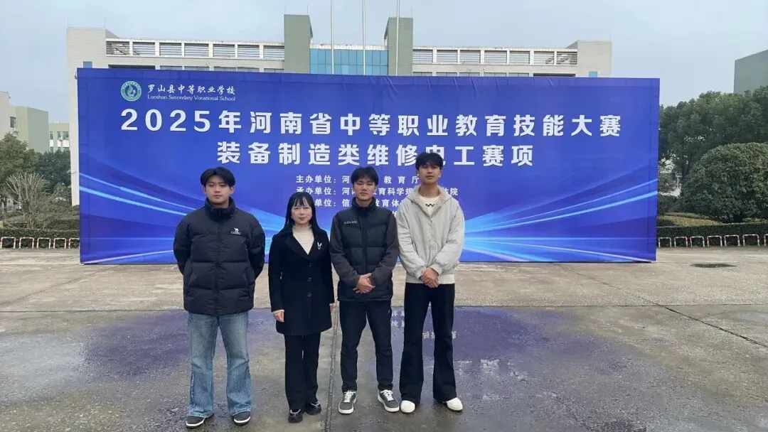2025年10月,在河南省中等职业教育技能大赛装备制造类维修电工赛项中,荆莉老师辅导的李艺铭(电气24-12)、何昊羽(电气24-12)、解华康(机械24-12)三位同学与全省149名选手过招,一举获得2个一等奖,1个二等奖。