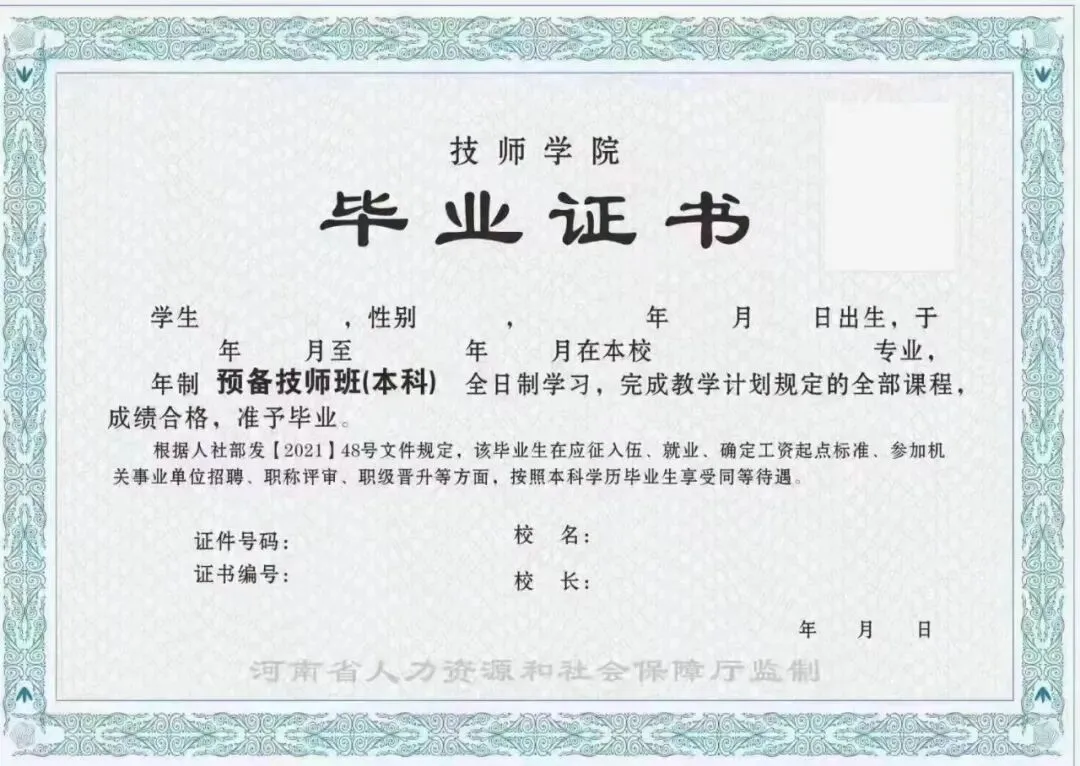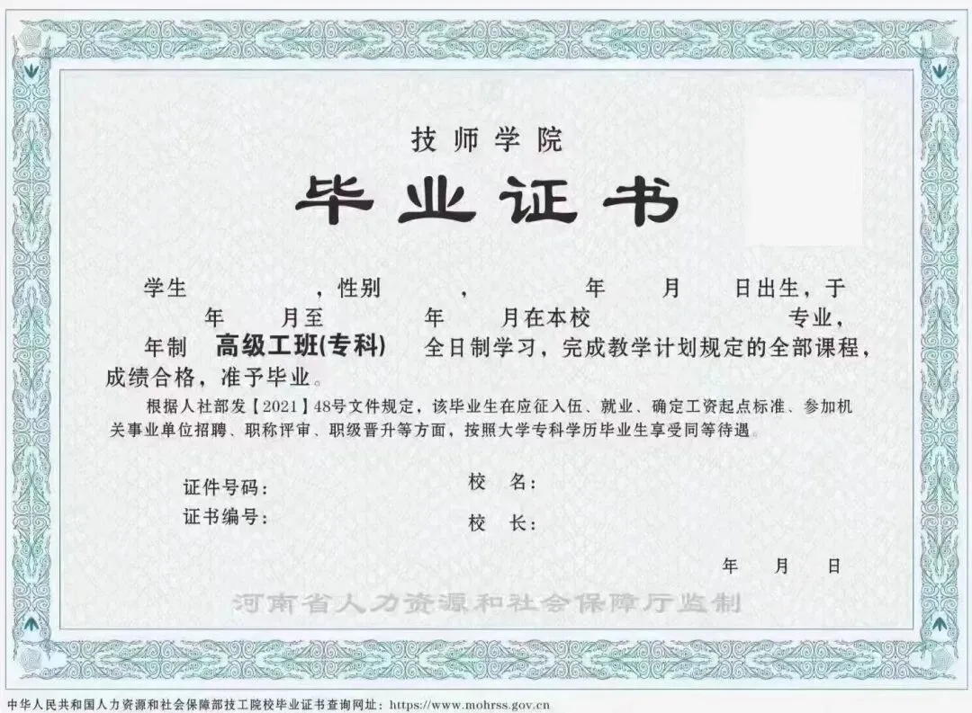 ①学生毕业颁发全日制技师学院毕业证书和全国通用的预备技师、高级工《职业技能等级证书》。