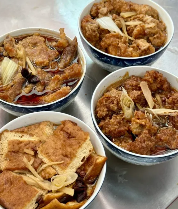 扣碗多是提前蒸好,肉要先炸再蒸,外层收紧,里面反而软。上桌时把碗一扣,汤汁“哗”一下流到盘里,热气贴着桌面散开。吃的时候别急,先夹一块肉,再蘸点蒜汁,肥的地方不腻,瘦的地方不柴,配米饭很稳妥。