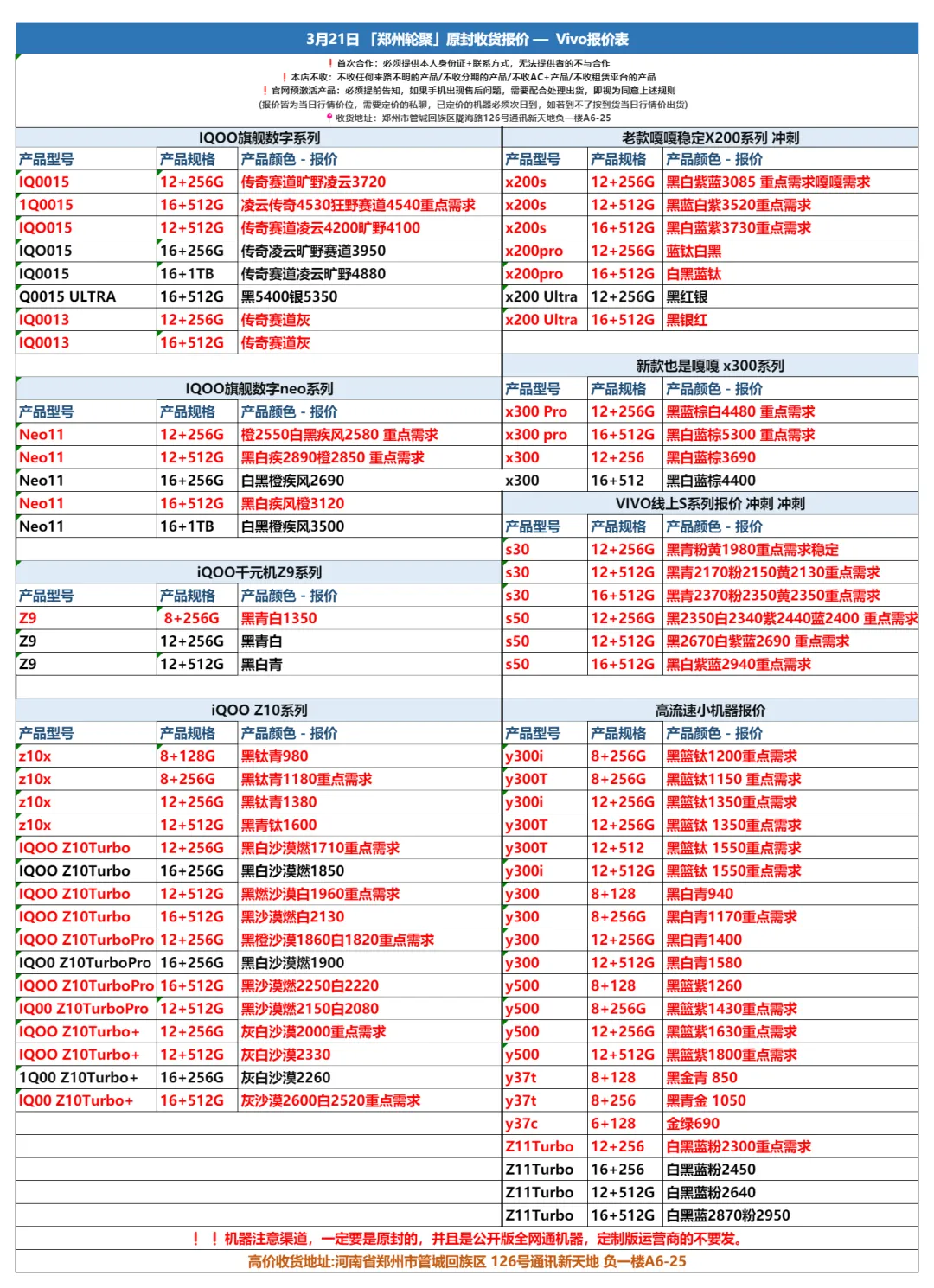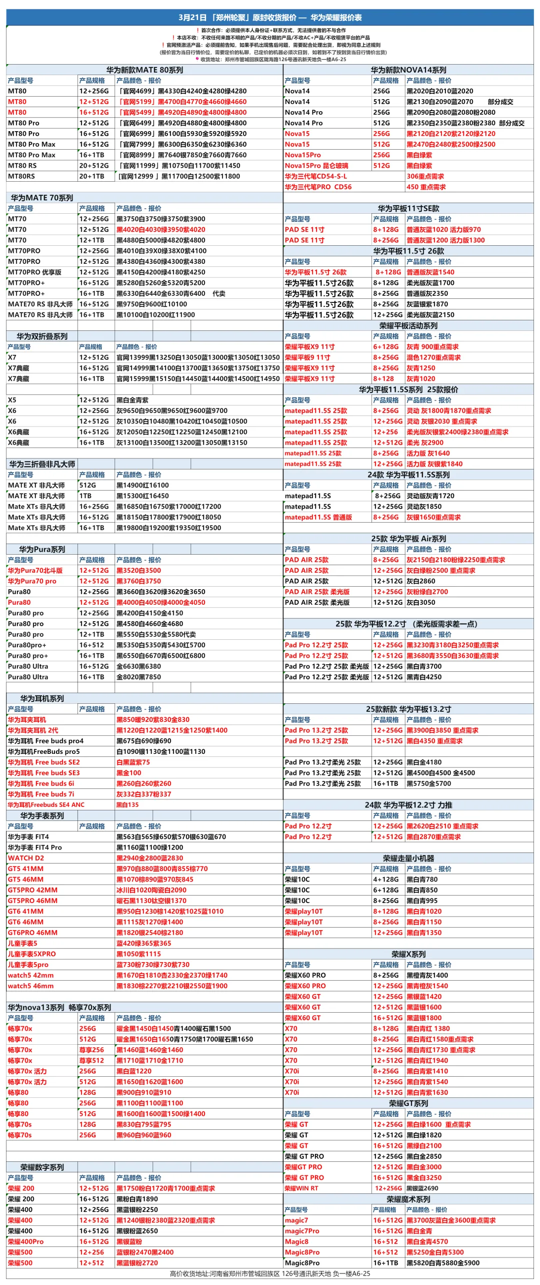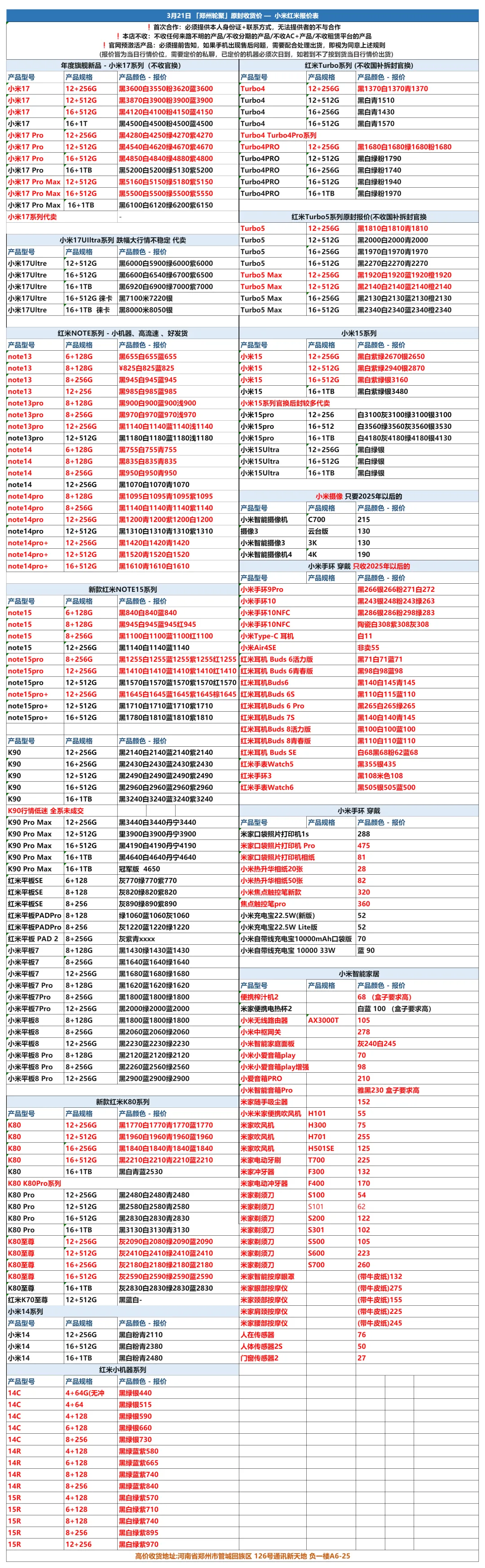 >郑州轮聚通讯 2026年3.21日数码报价更新
