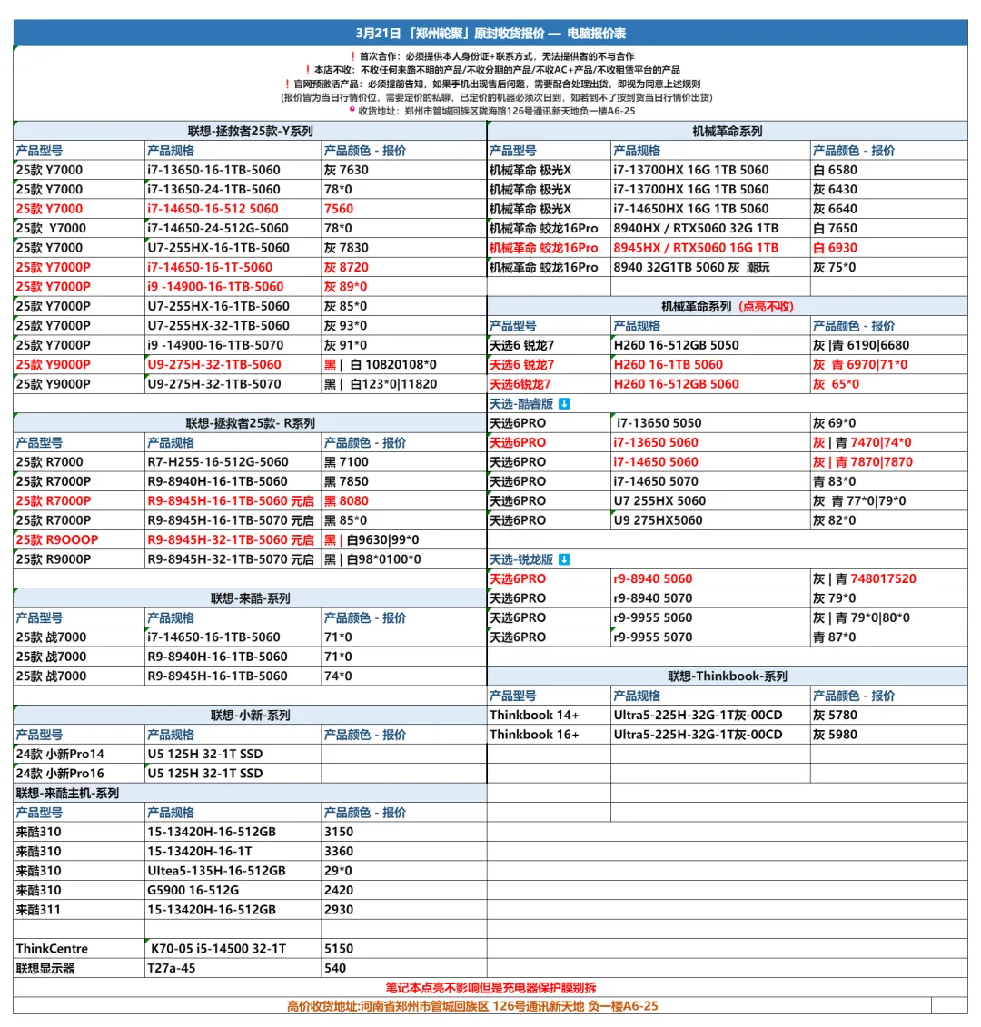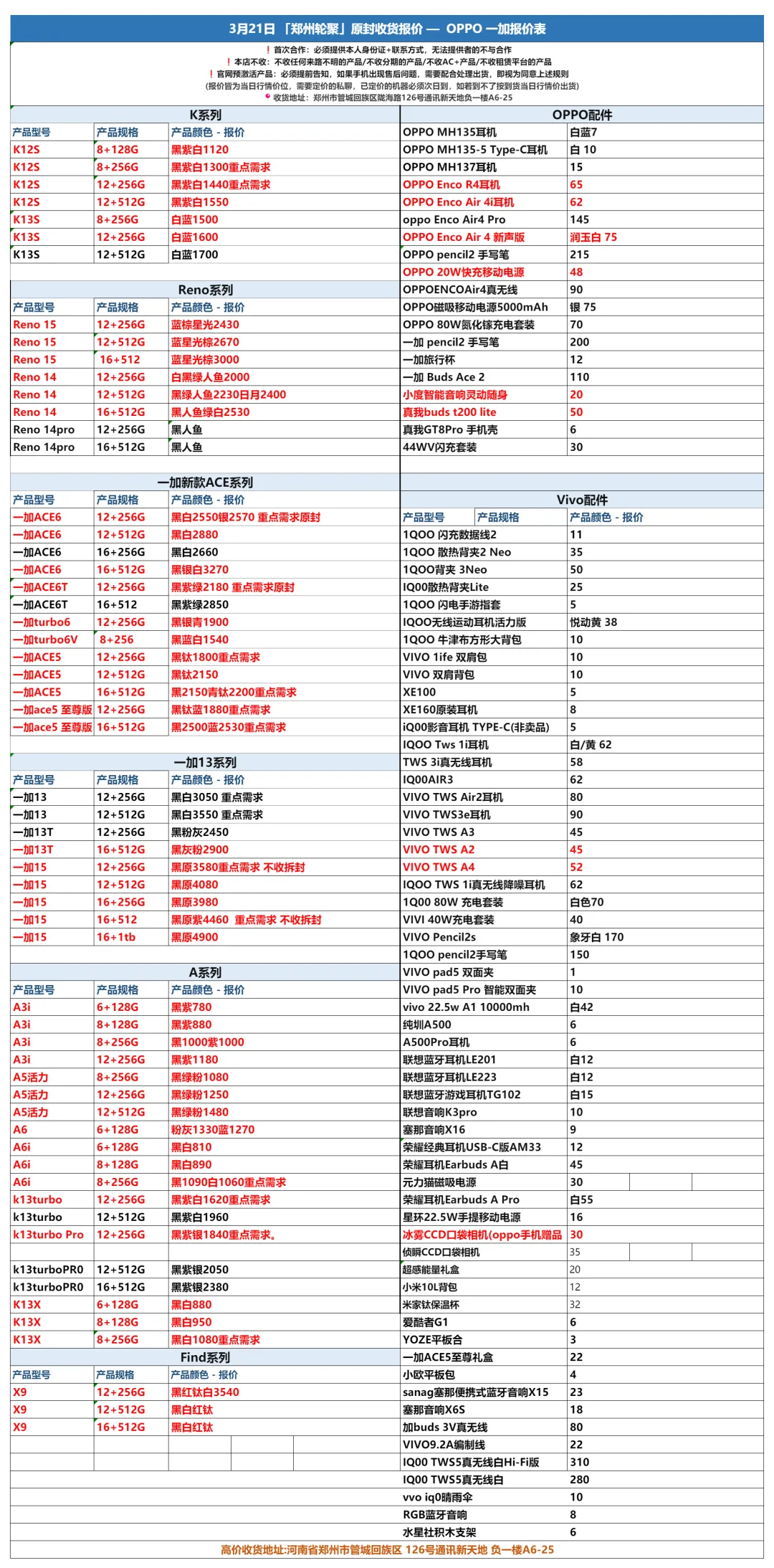 郑州轮聚通讯 2026年3.21日数码报价更新